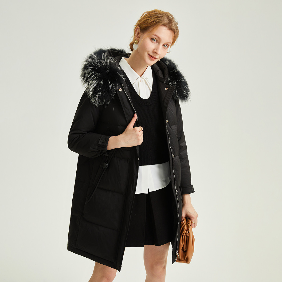 【90鸭绒】宽松中长款翻领收腰时尚保暖羽绒服女 578646