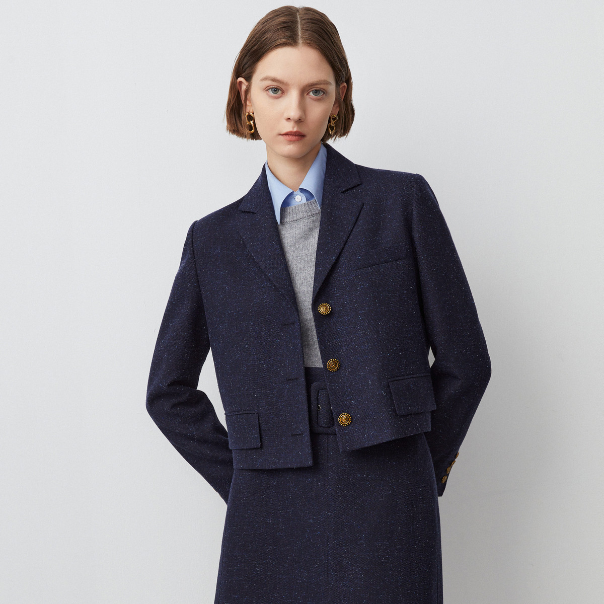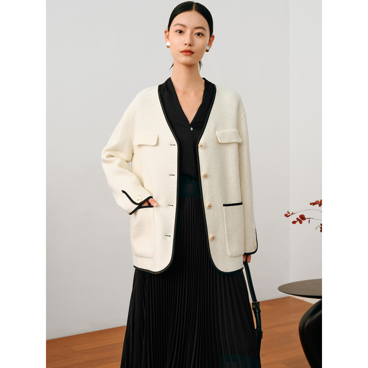 朗姿纯羊毛复古双面呢夹克高级感正肩毛呢冬季上衣 447257