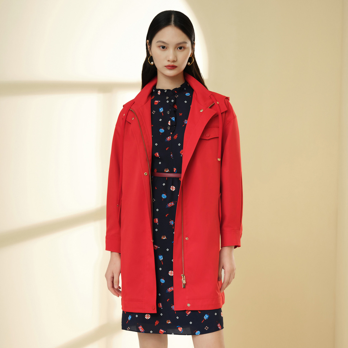 JZ玖姿商场同款连帽休闲风衣女士春装中长外套JWCC41208 250444
