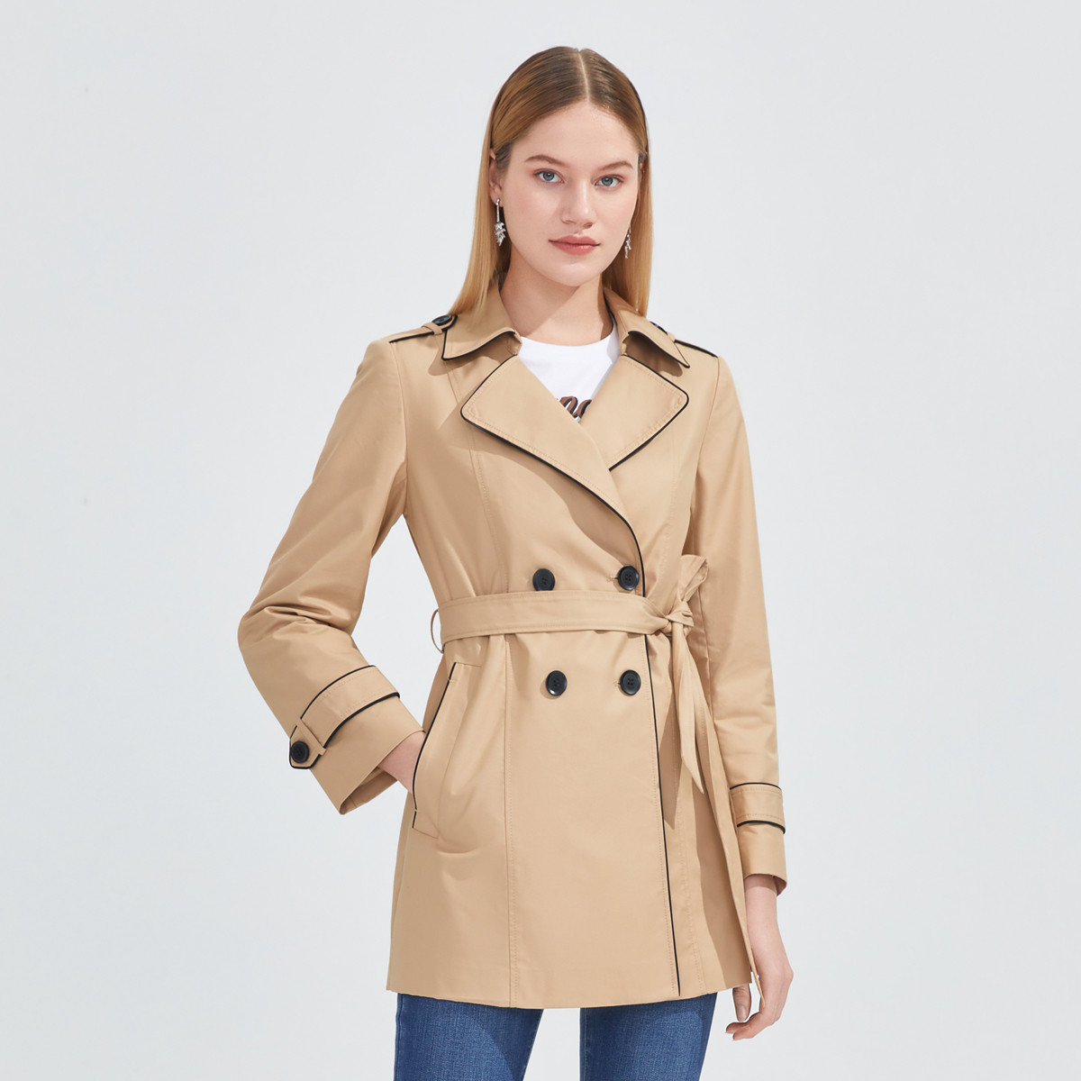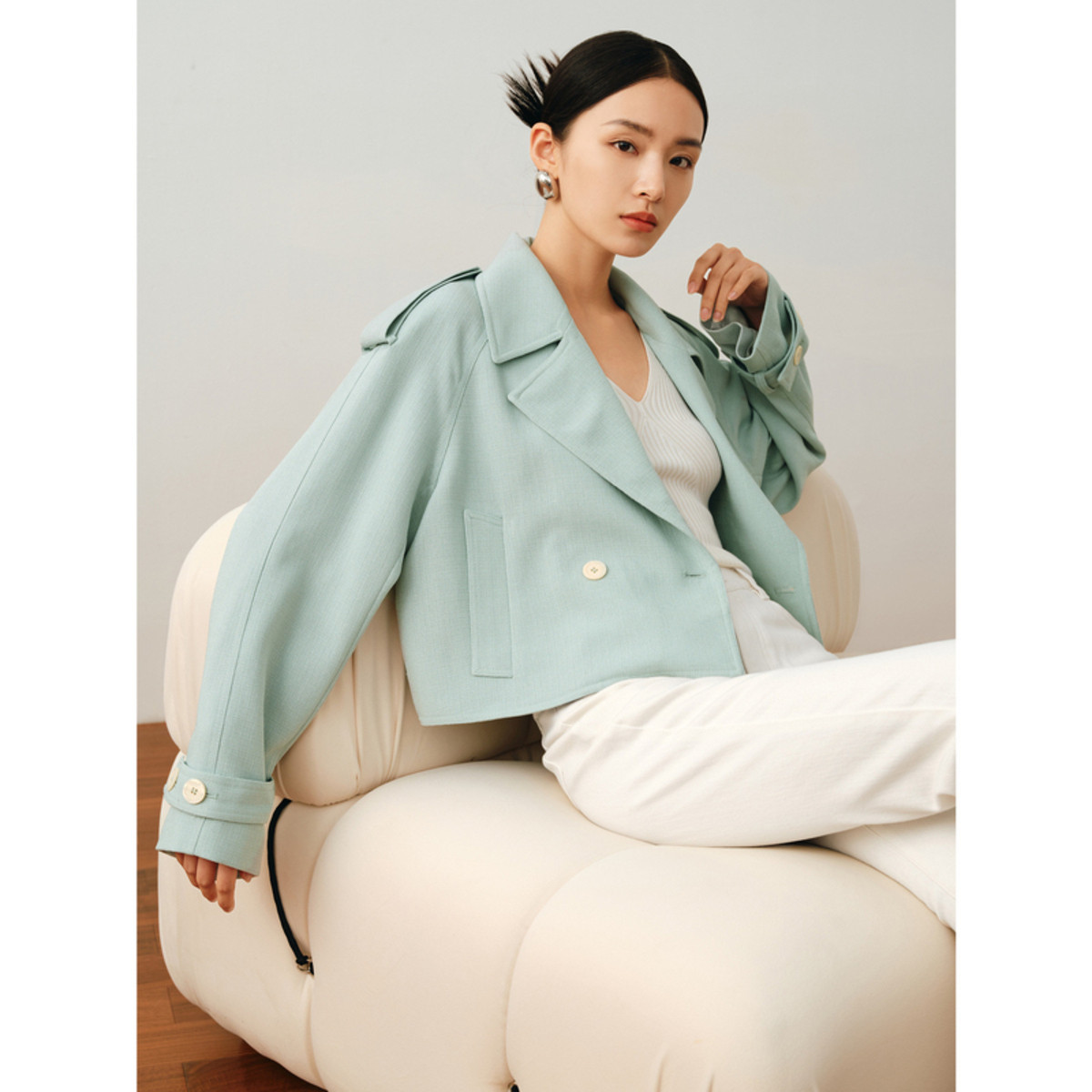 【薄荷曼波】玖姿旗下安娜蔻系列OL风截短式H型长袖醋酸风衣外套 681612