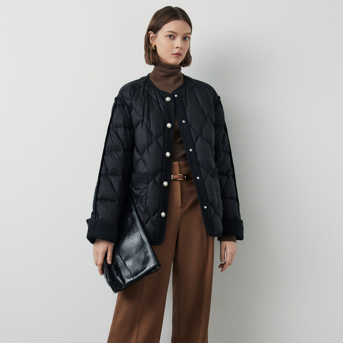 霍尔多巴吉白鹅绒法式小香风圆领羽绒服外套冬季上衣 094873