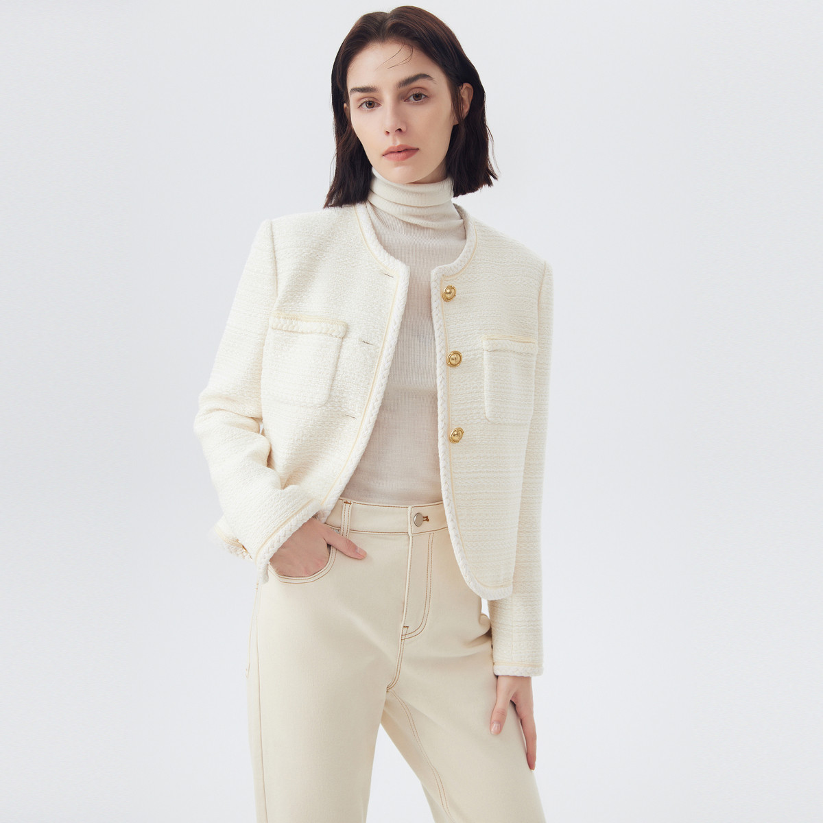 春秋款法式复古羊毛小香风高级感气质短外套外套上衣女 631449