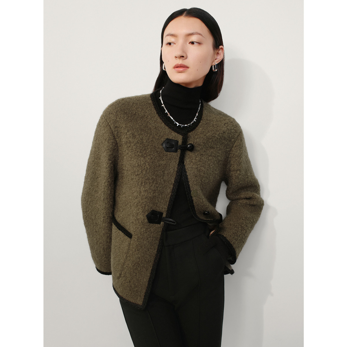 玖姿旗下安娜蔻系列别致撞色圆领羊毛混纺短大衣女冬季 571660
