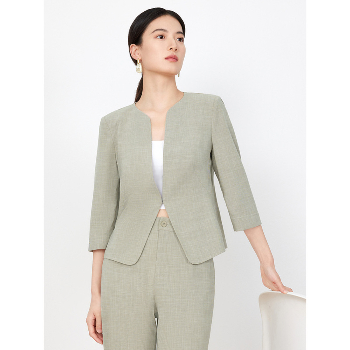 玖姿旗下安娜蔻系列无领西装女装夏季通勤OL风休闲外套 920332