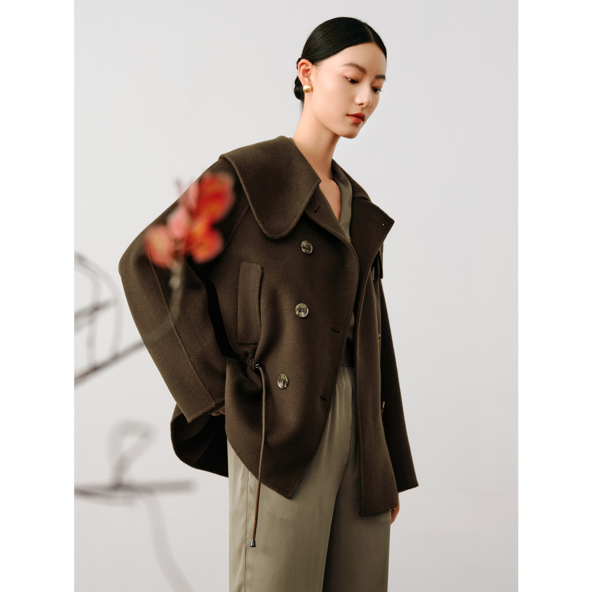 玖姿旗下安娜蔻系列时尚休闲宽松娃娃领双面呢羊毛大衣女秋季 245516