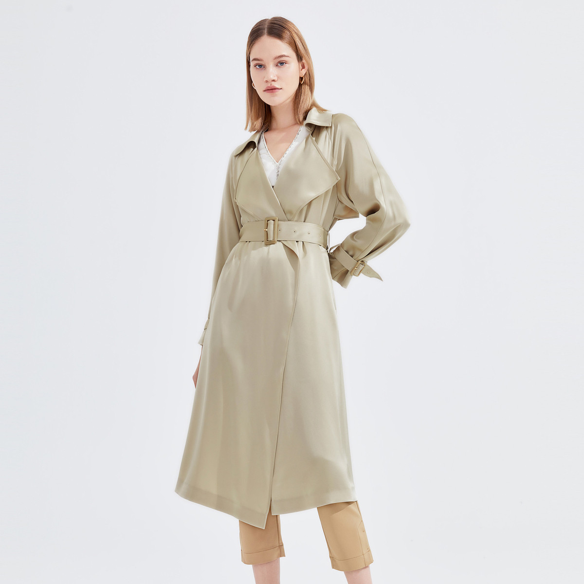 JZ玖姿商场同款翻领休闲中长款外套春季风衣 231884