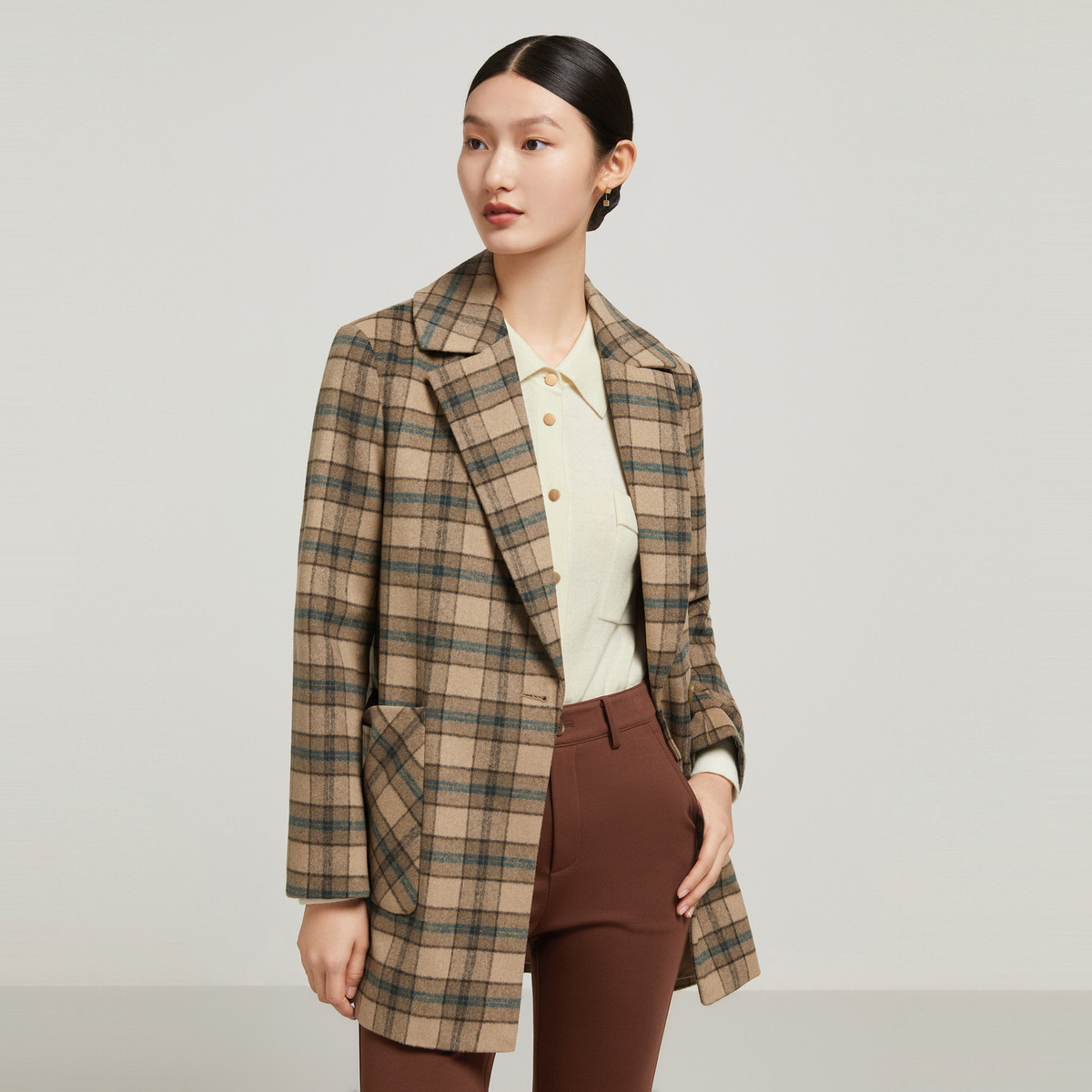JZ玖姿商场同款格纹羊毛大衣冬季毛呢外套JWBD72215 239500