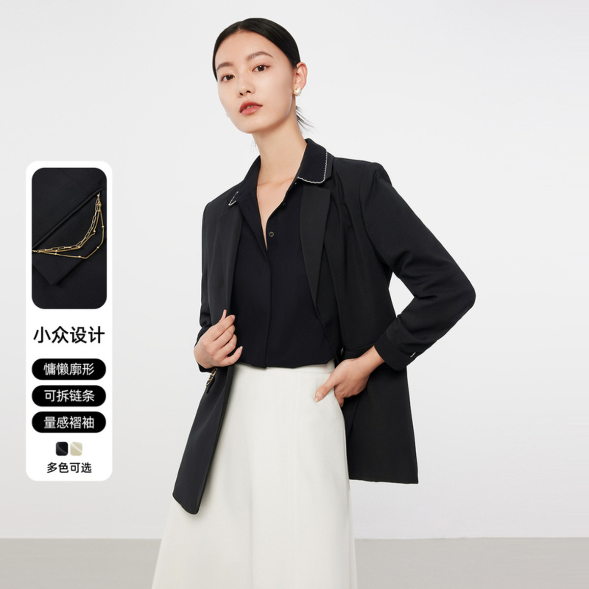 玖姿春季西装翻领利落干练金属质感女式外套 902348