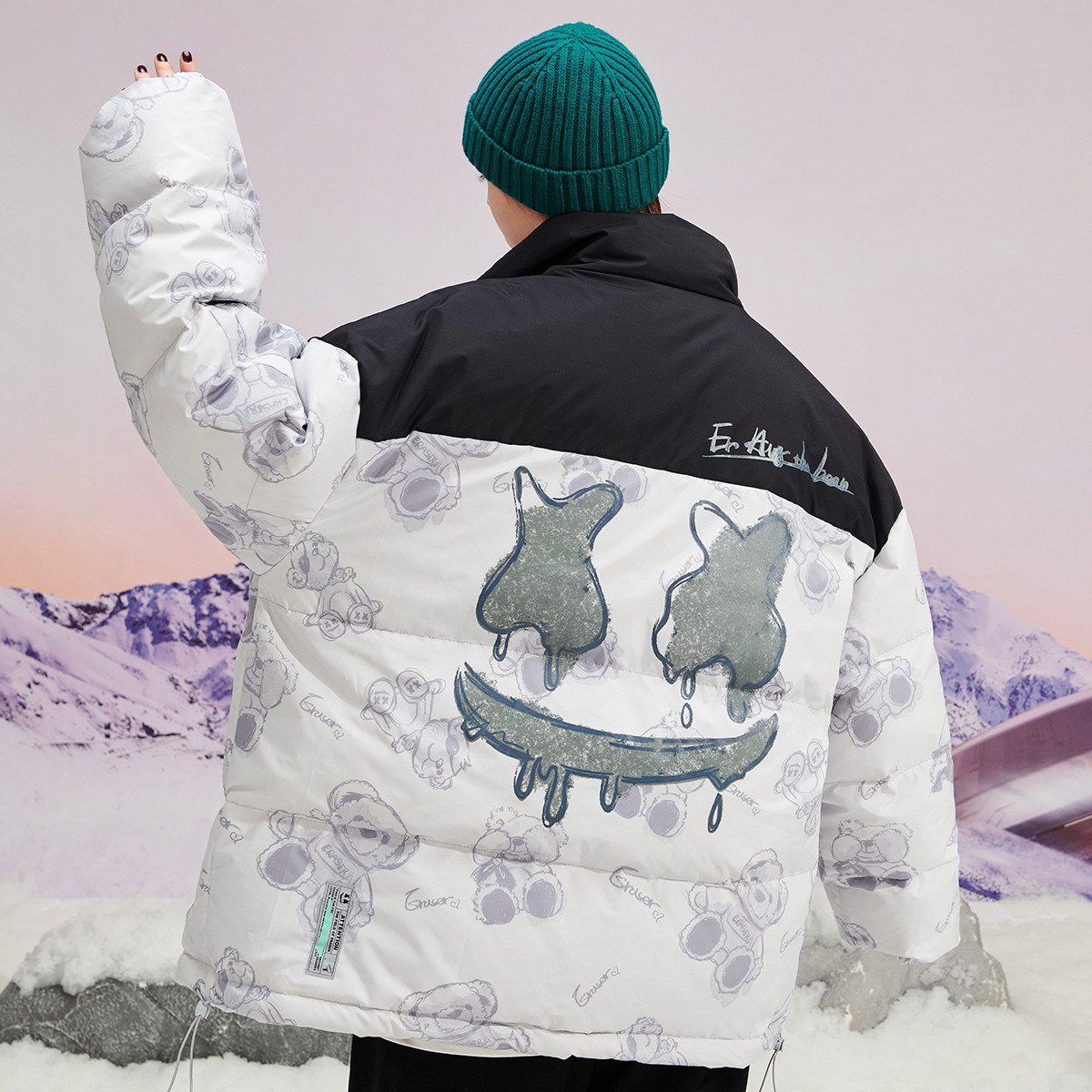 冬季立领短款羽绒服拼接外套休闲宽松保暖上衣男女同款 304919