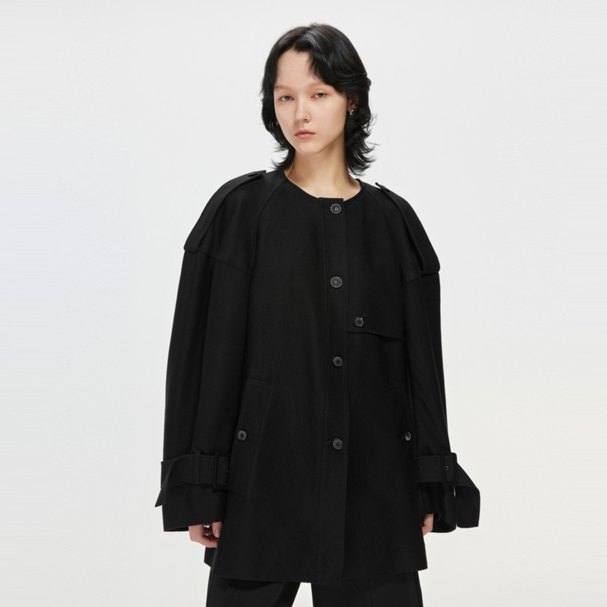 春呢大衣宽松立领长袖外套女 139723