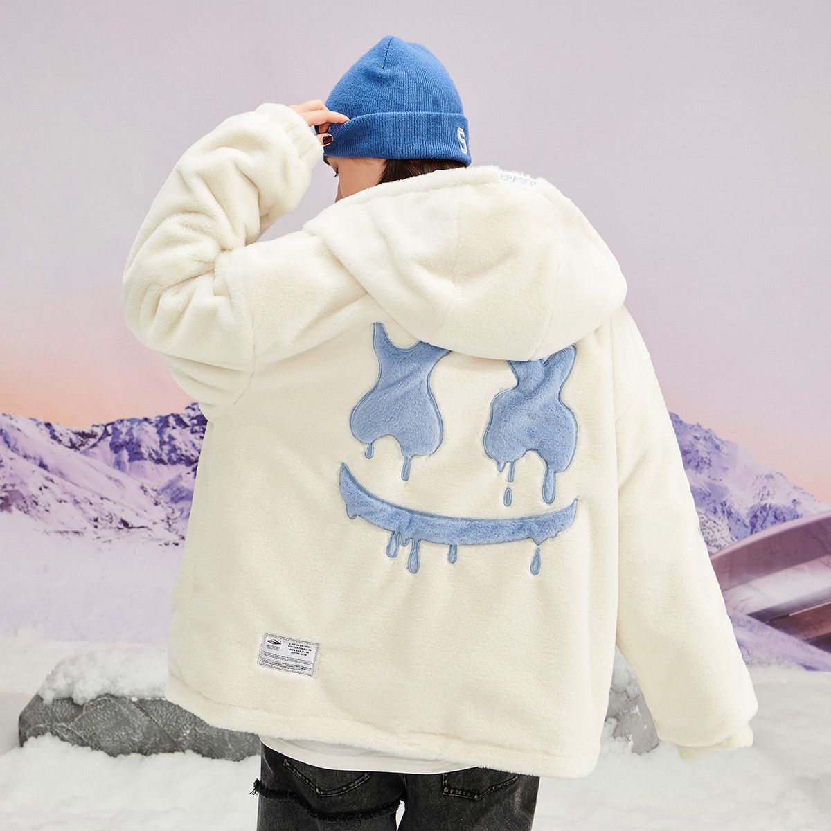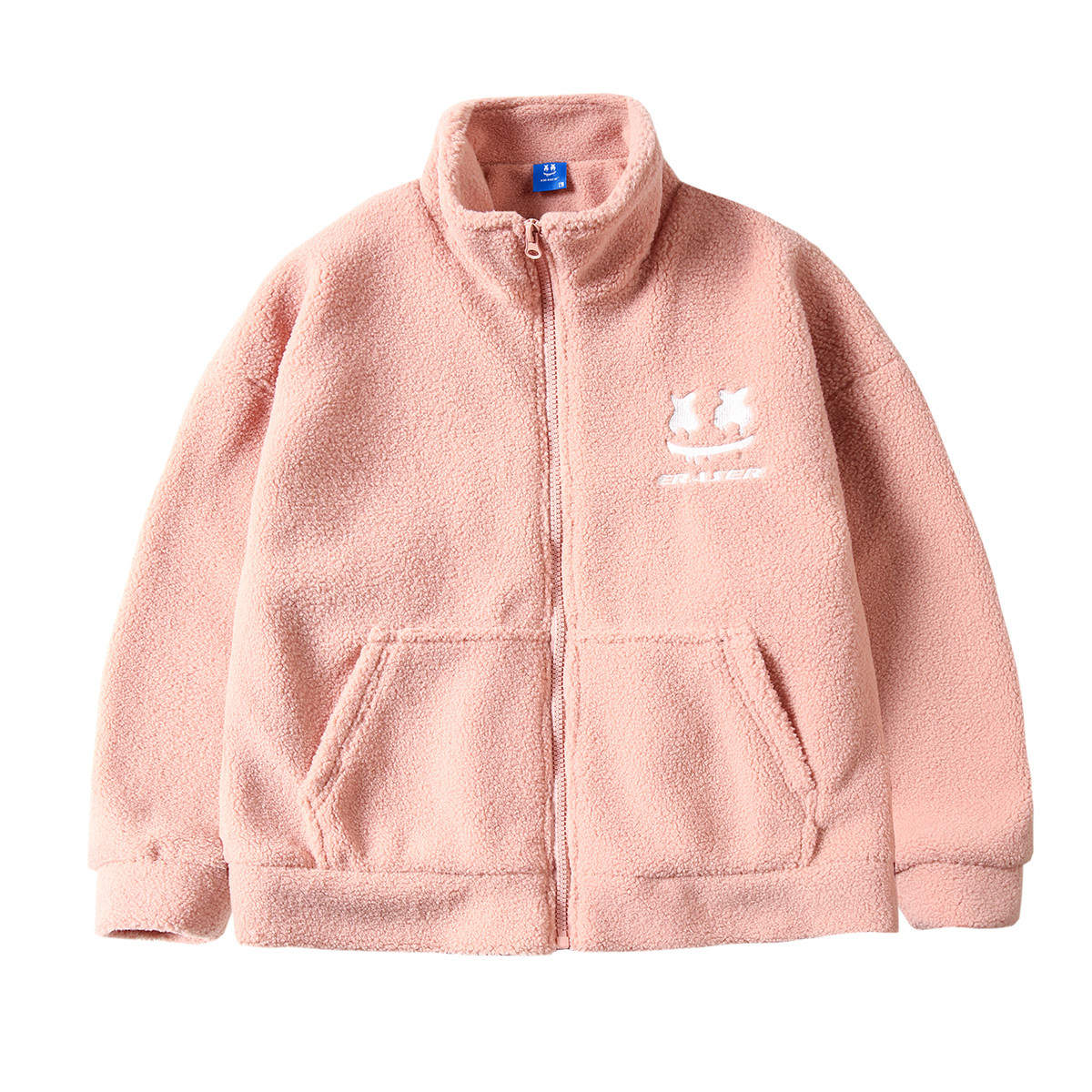 字母刺绣仿羊羔绒外套国潮保暖立领休闲宽松男女同款情侣装 943255