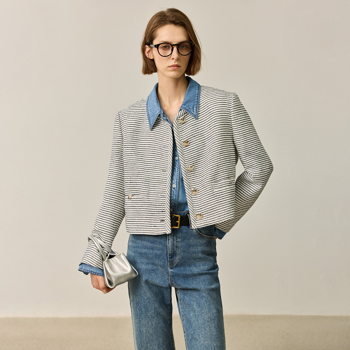 春季外套女时尚小香风复古条纹都市通勤款短外套小个子女 172827