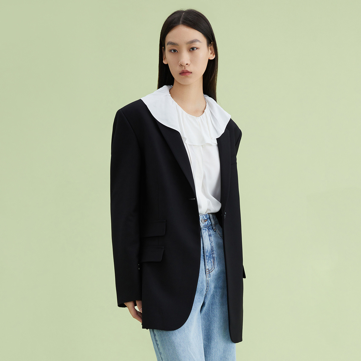 【商场同款】春季简洁一粒扣时尚通勤黑色西装外套 976923