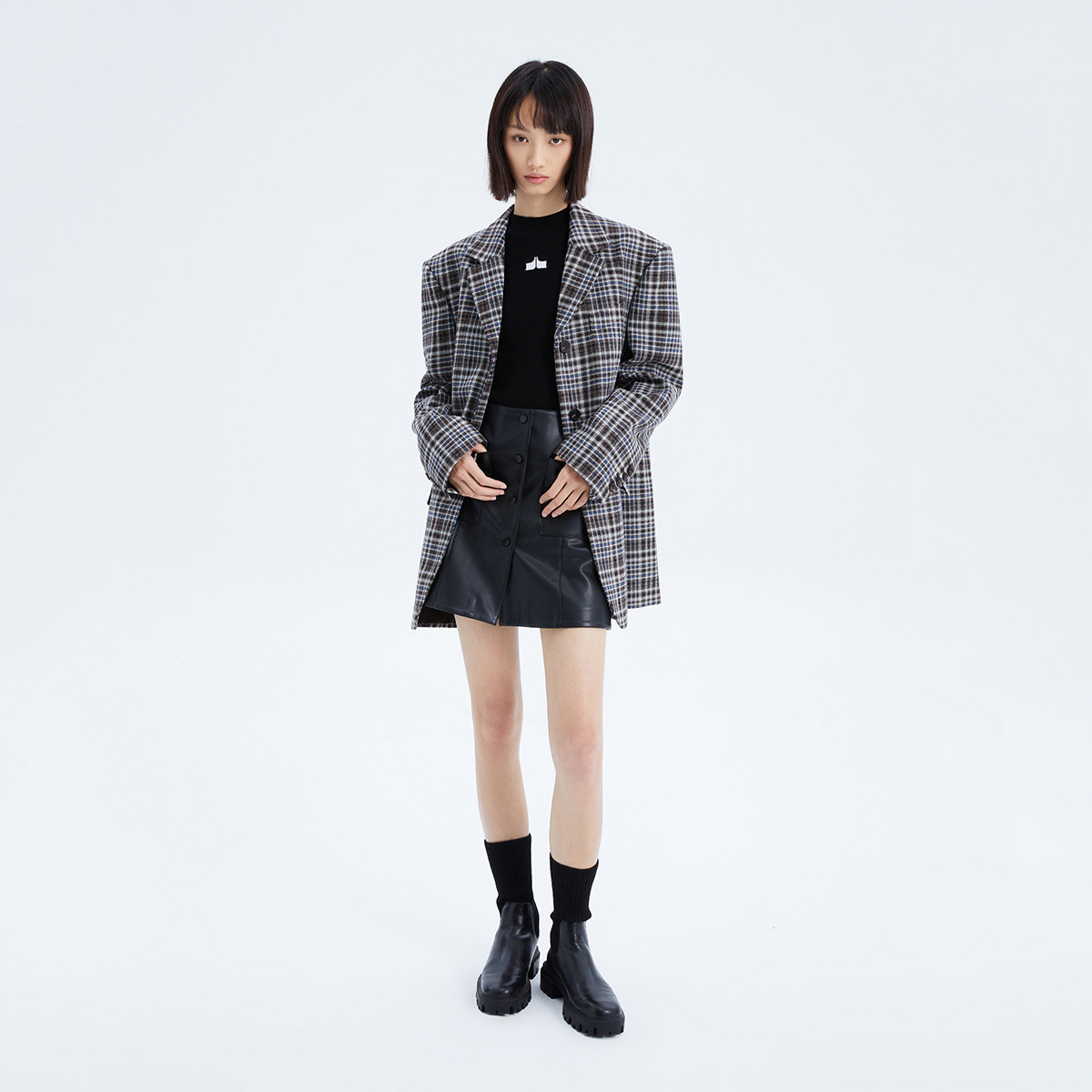【商场同款】春季复古洋气格纹时尚通勤款西装外套 188635