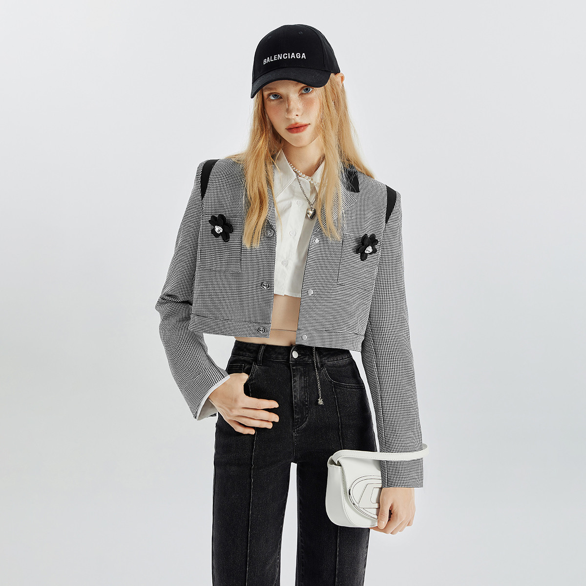 PORTS宝姿女装春季时尚个性Crop Top格纹短西装 661194