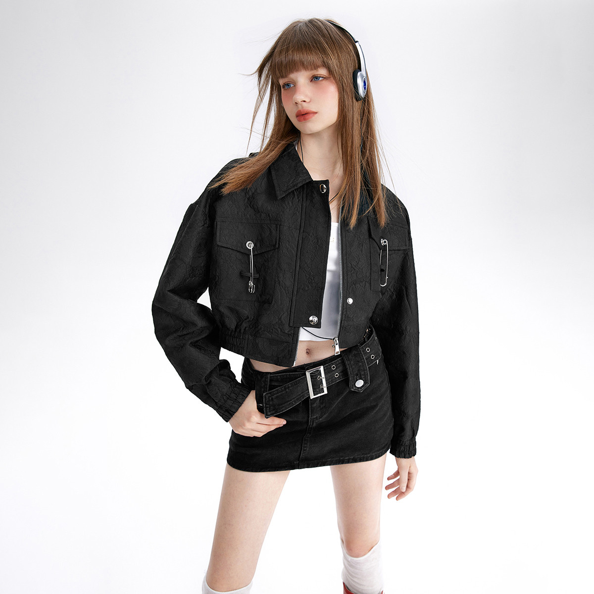 秋季别针装饰夹克短外套女高街ins设计感小众上衣 110420