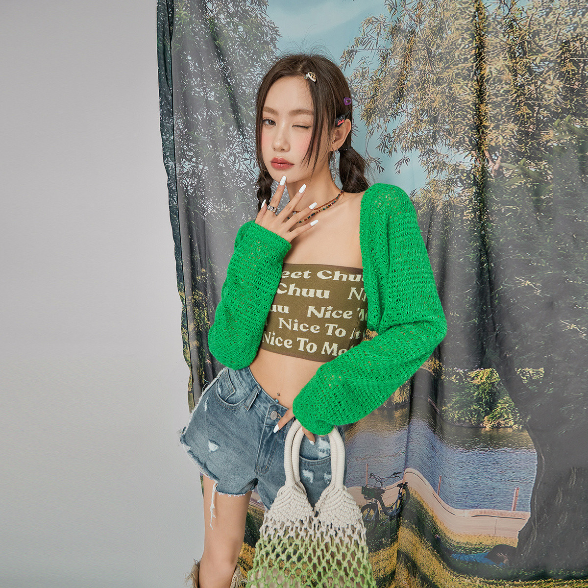 CHUU镂空长袖针织开衫外套女夏韩版空调衫外搭薄款上衣 350355