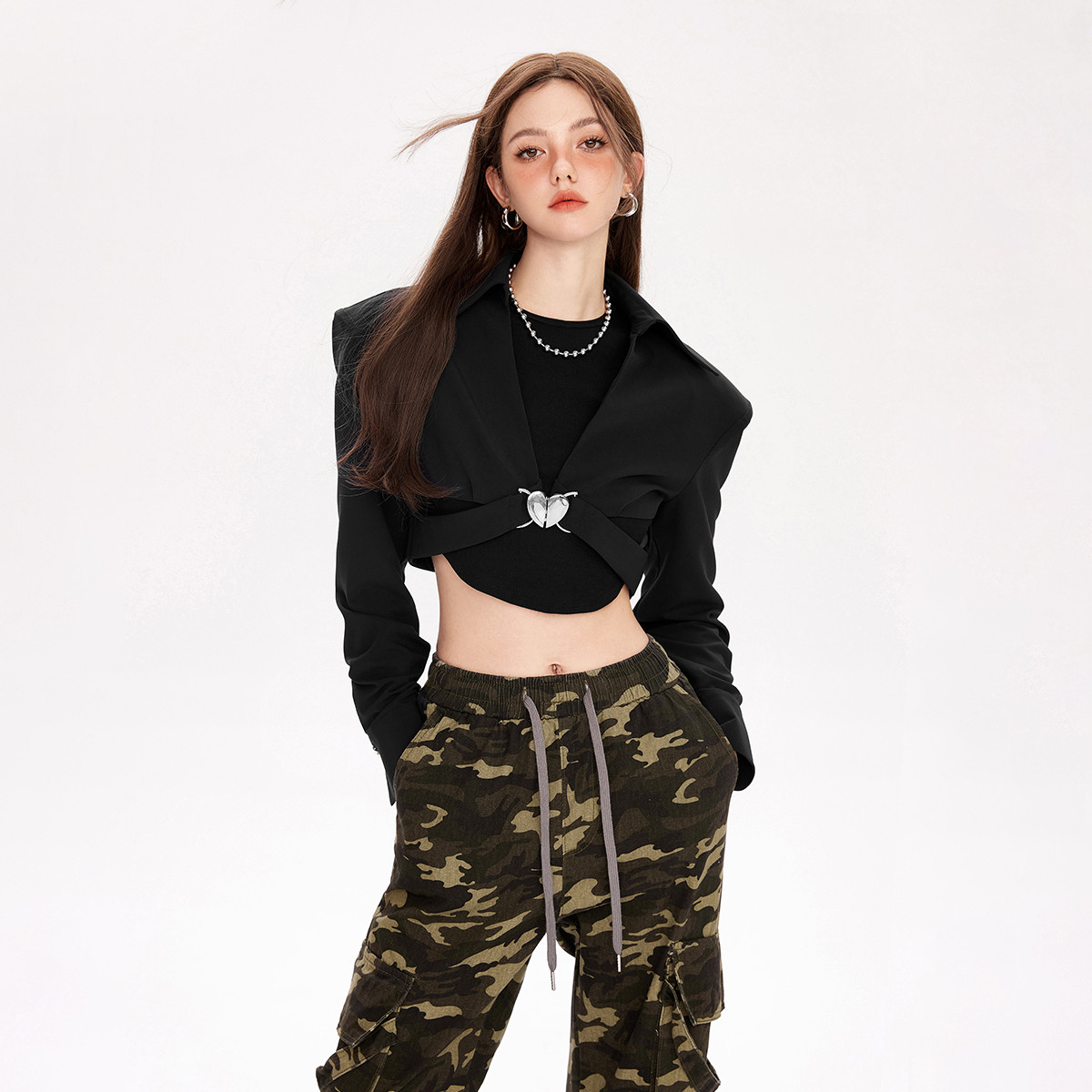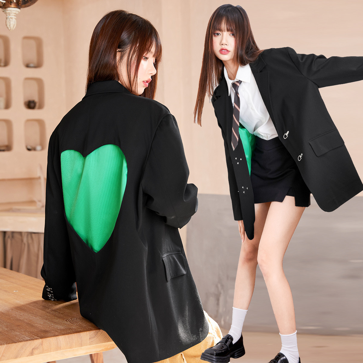 春秋撞色镂空爱心西装外套女时尚潮流小心机设计感上衣 956948