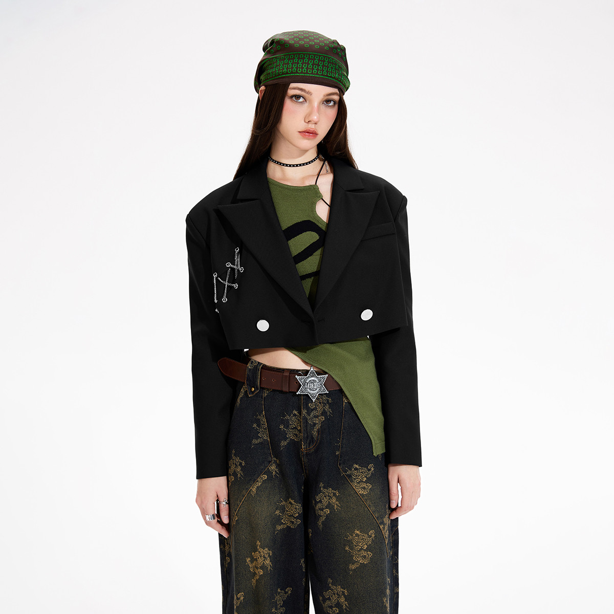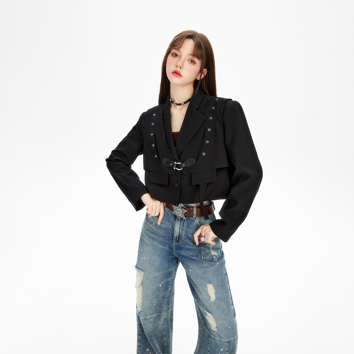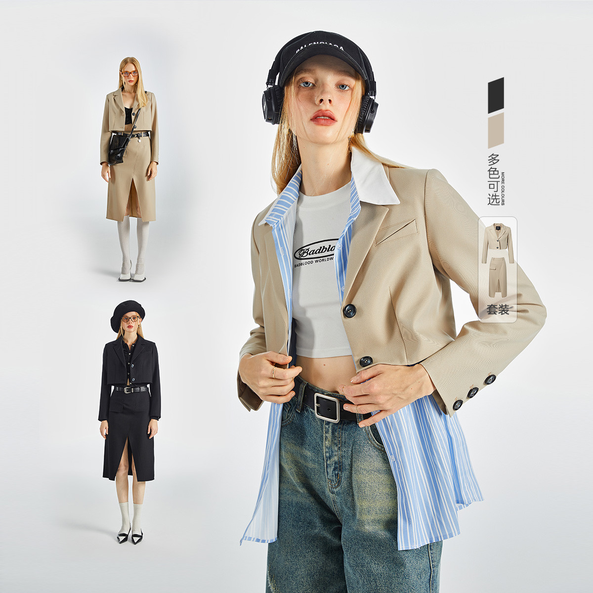 2024季节春秋解构假两件短款西装女廓形小西服设计外套 982420