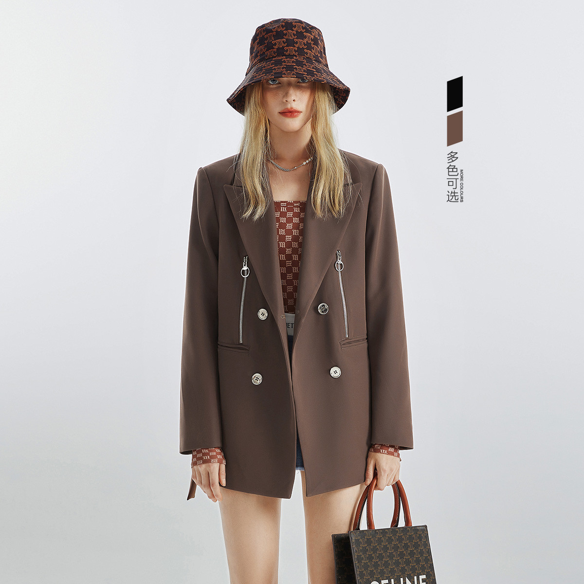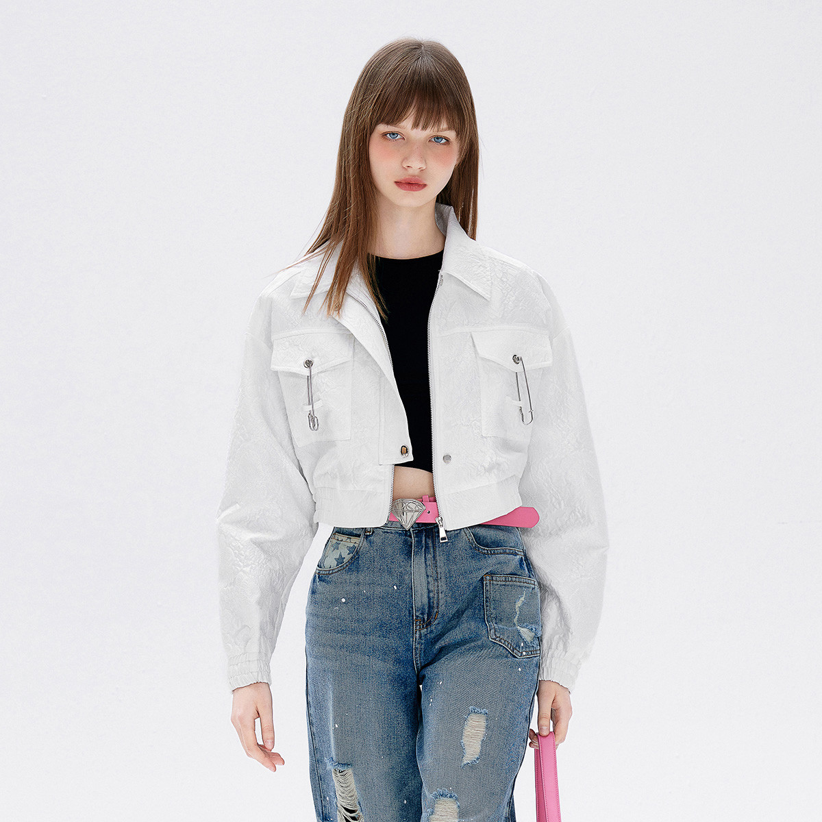 秋季别针装饰夹克短外套女高街ins设计感小众上衣 114516