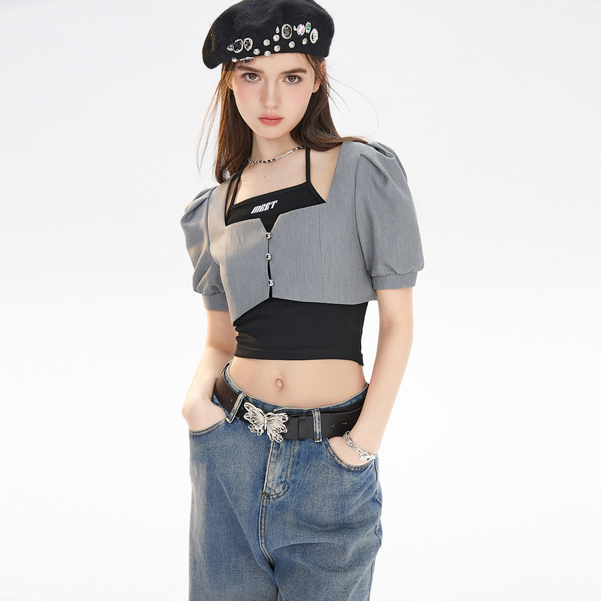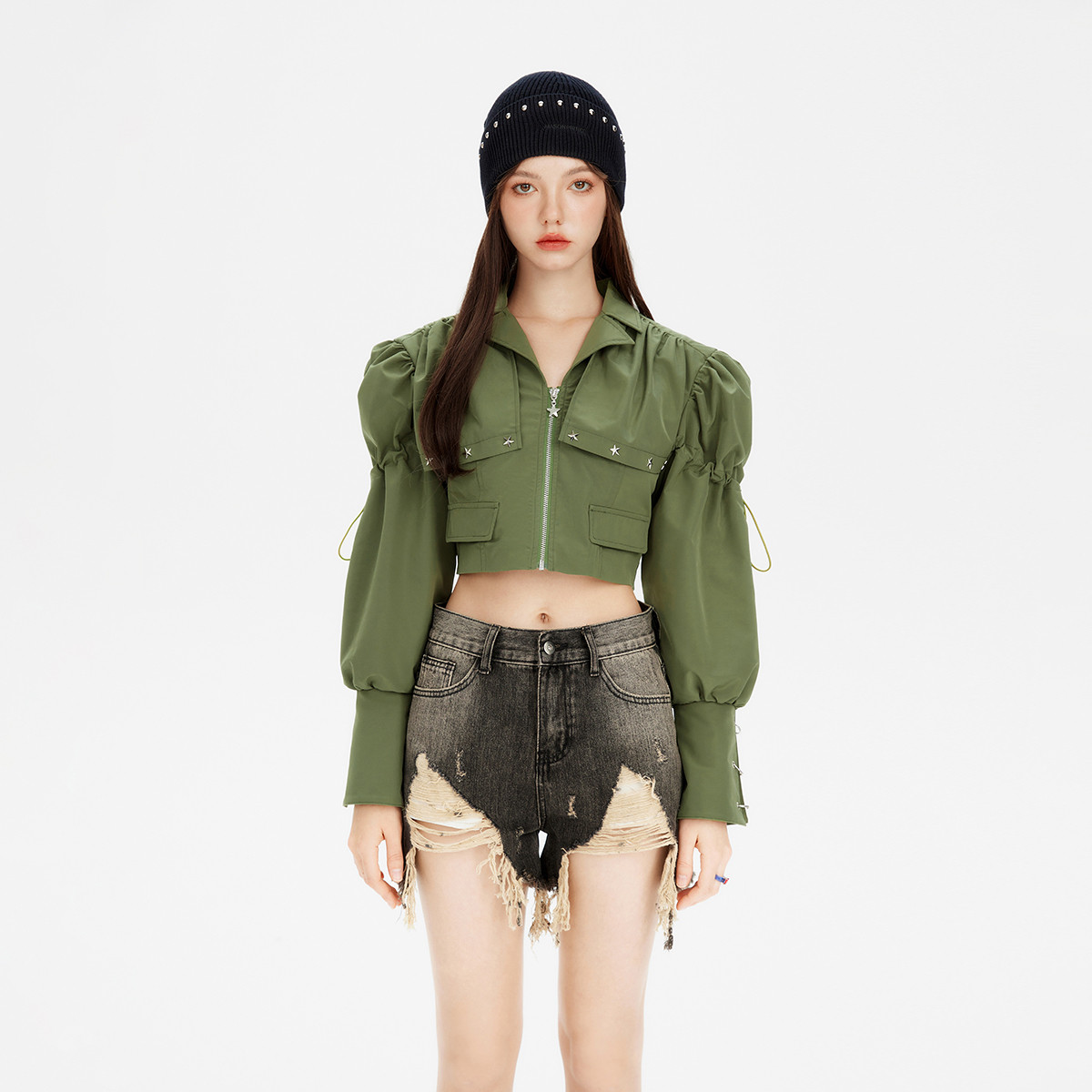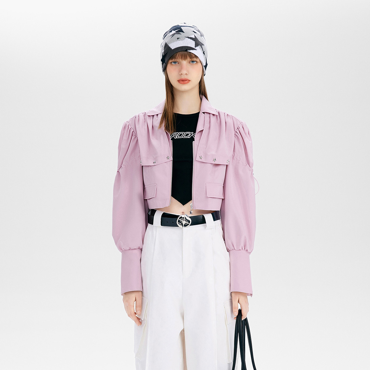 春秋休闲泡泡袖短款外套女甜酷街头设计感小众上衣 969556