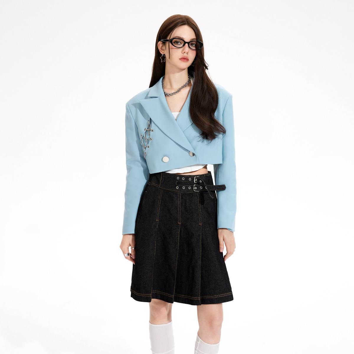 春秋高级感休闲小西装女纯色设计感小众链条短外套 981140