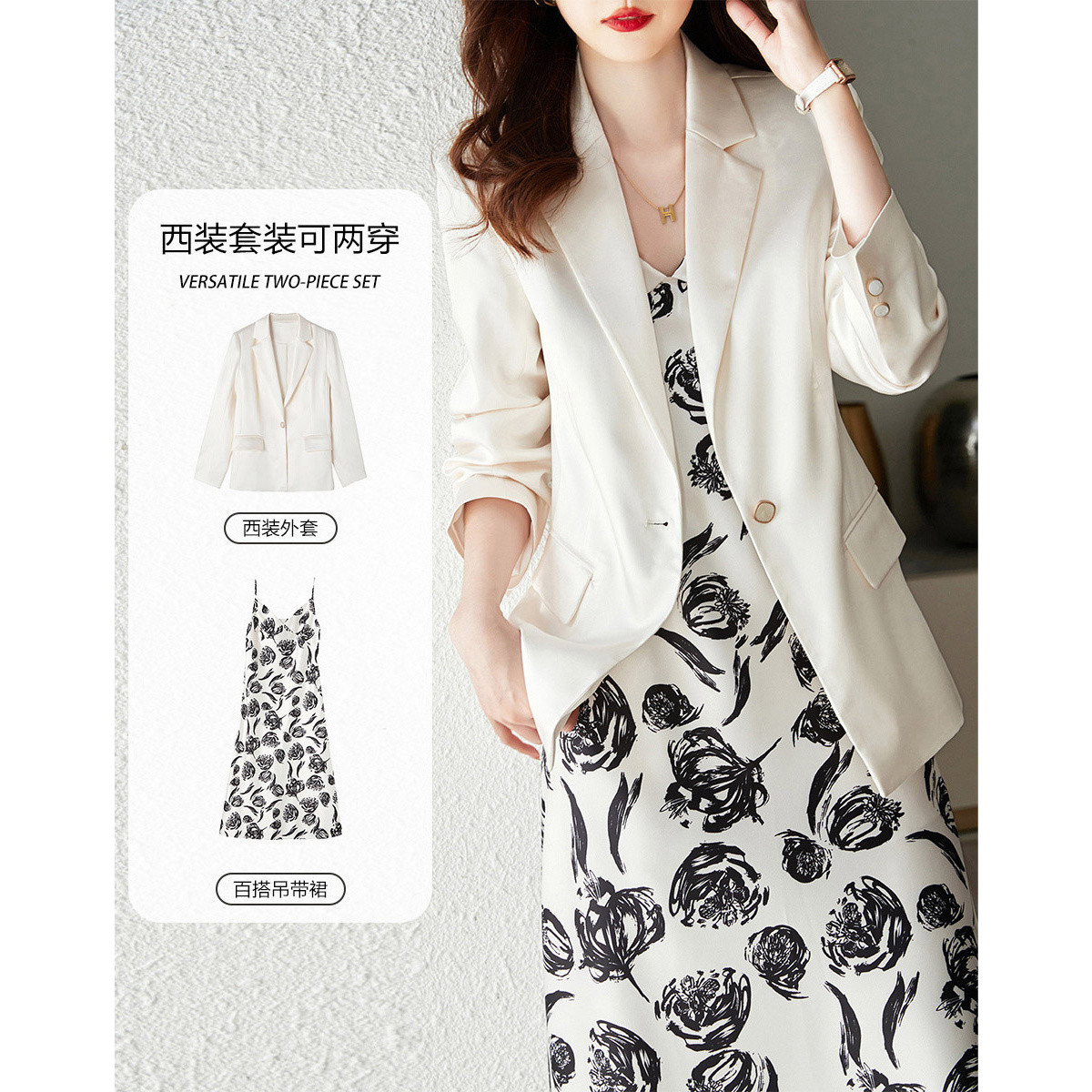 【秋装热卖两件套】纯色短款西装+吊带连衣裙女法式高级感套装 325460