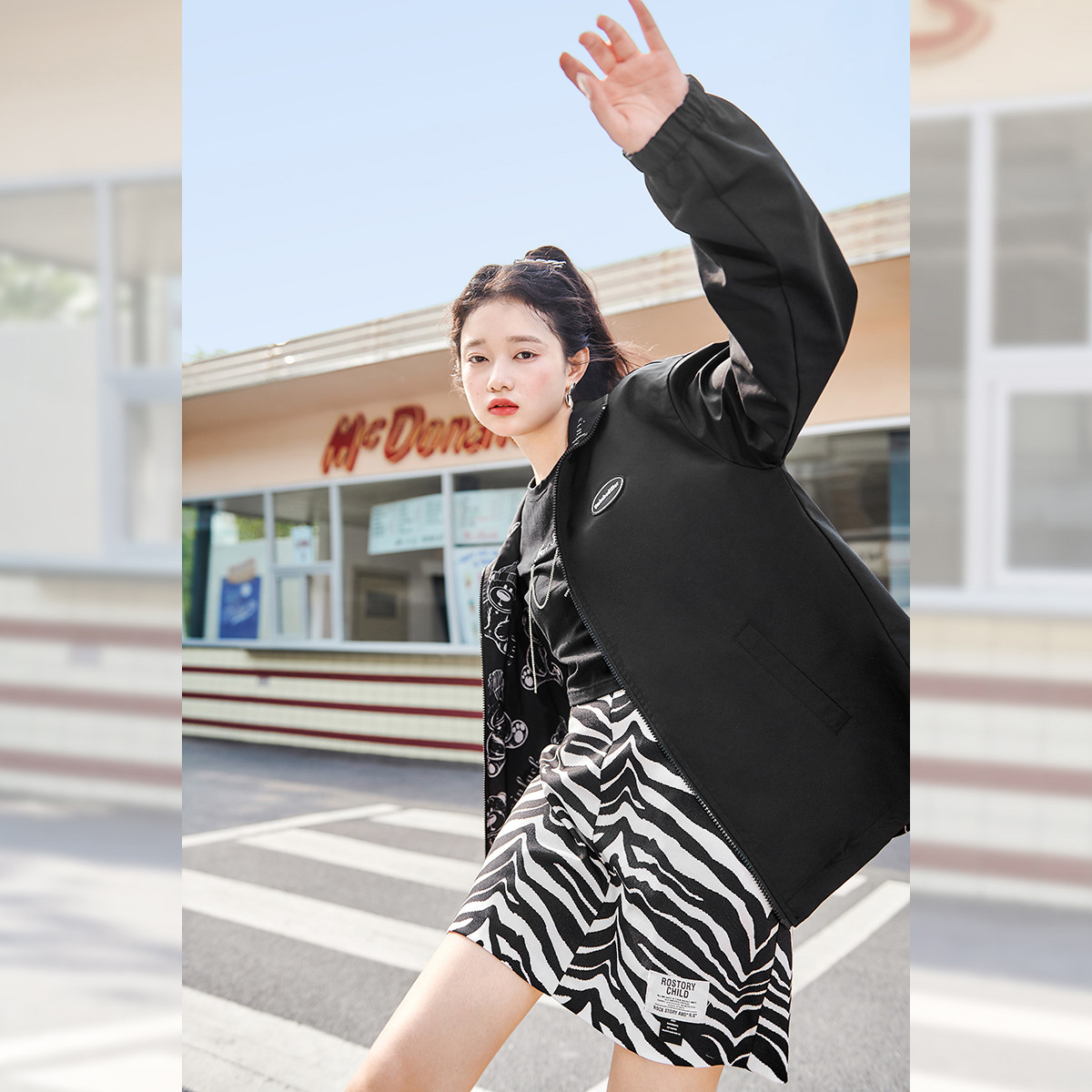 春秋印花小熊宽松正反两面穿夹克女开衫薄款短外套 930580