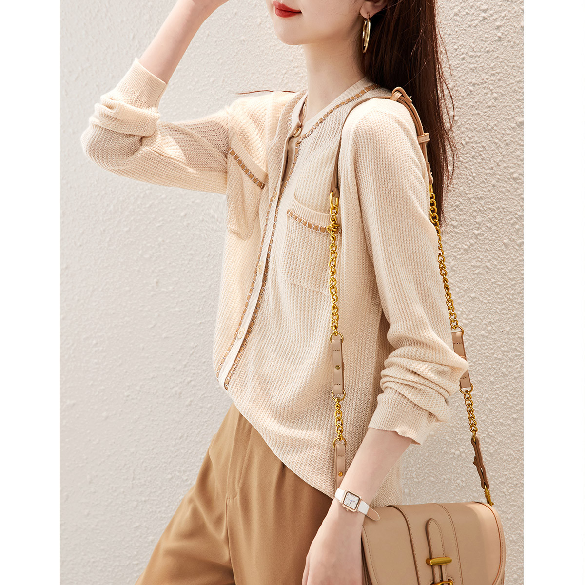 春秋高级感休闲小西装女纯色设计感小众链条短外套 968852