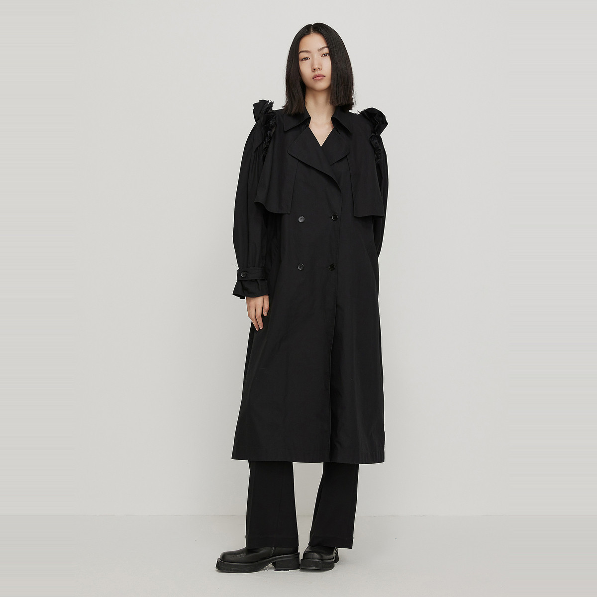 春秋风衣纯棉褶皱荷叶边宽松翻领外套女 500363