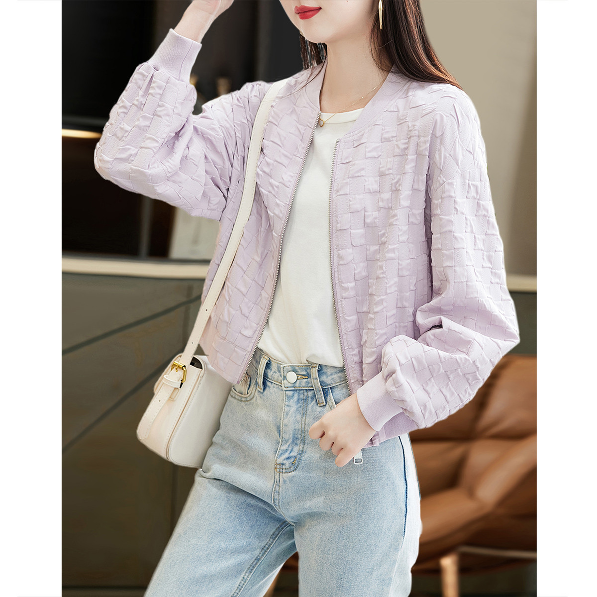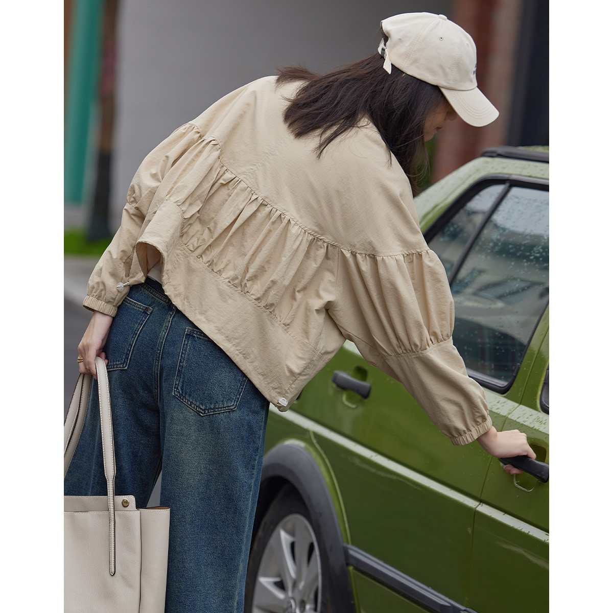 【肌理压皱夹克外套】春秋棒球领宽松落肩外套女短款 430081