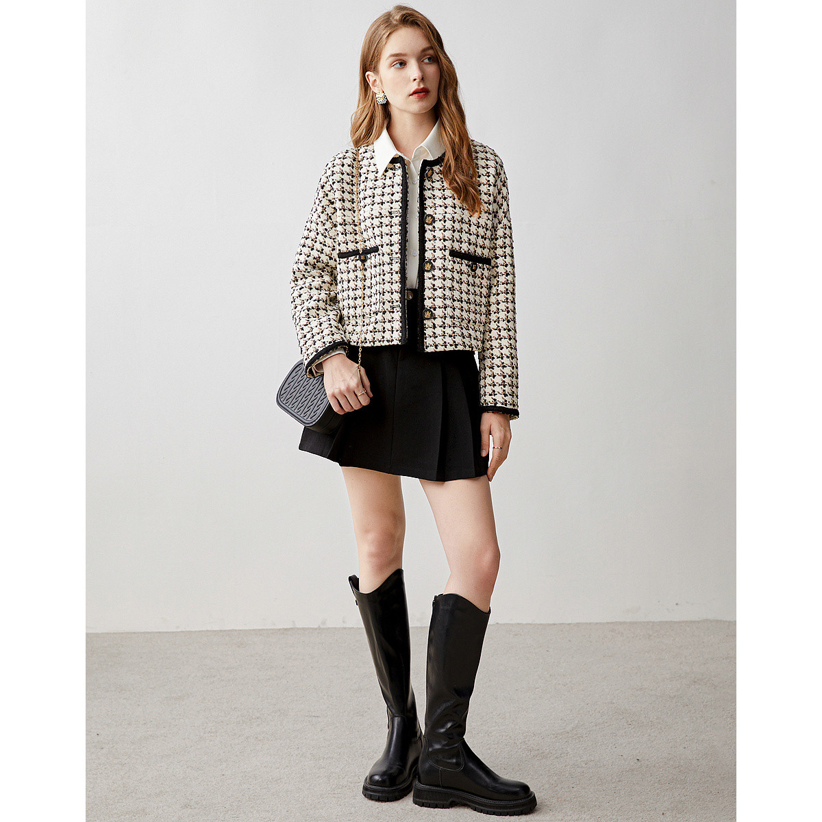 【轻奢小香风外套】春秋通勤优雅圆领长袖外套女短款 652609