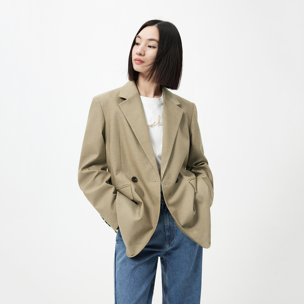 【宽松阔版】春季西服质纯色简洁优雅通勤时尚双排扣宽松西装外套 543195