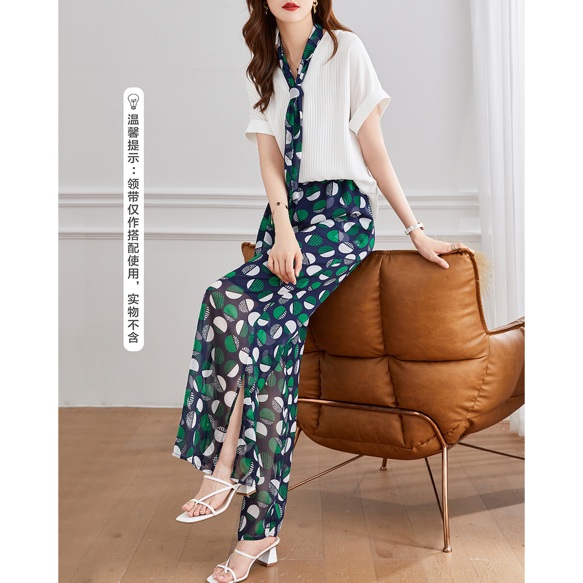 【懒人免搭福利】夏松弛感V领上衣植物印花休闲裤女式时髦两件套 913921