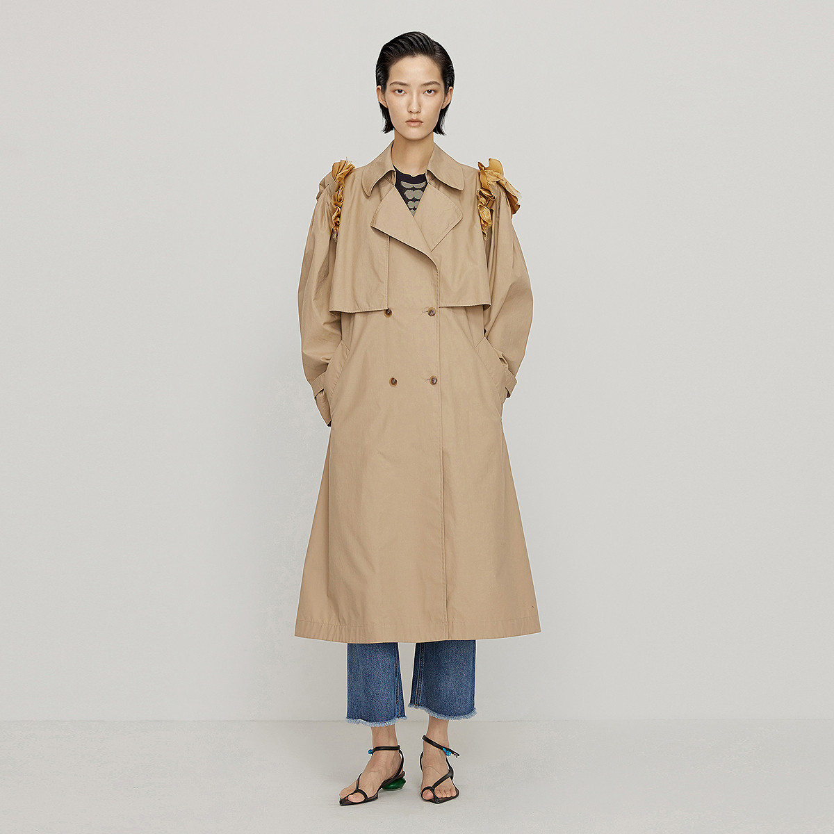 春秋风衣纯棉褶皱荷叶边宽松翻领外套女 752651