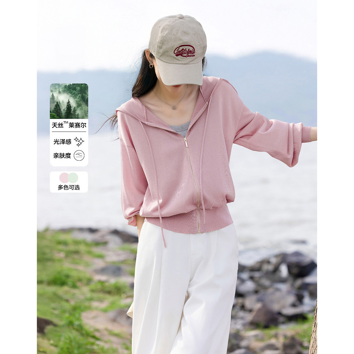 【轻舒莱赛尔】春秋小清新连帽宽松遮肉小个子气质短款女式外套 076353