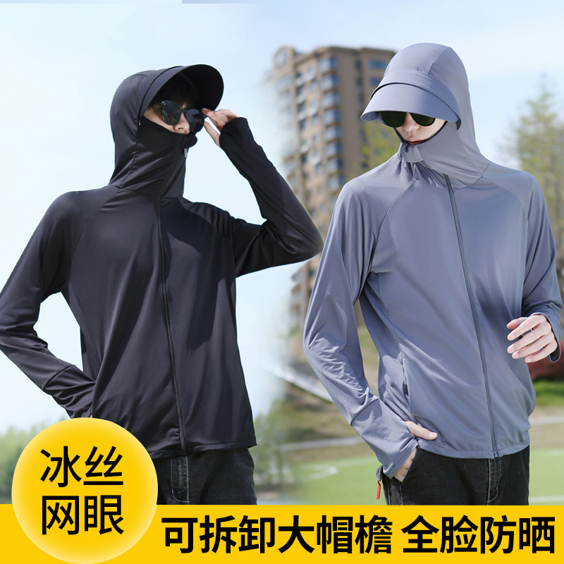 钓鱼防晒衣男遮全脸夏天户外紫外线面罩大帽檐遮阳防晒衣