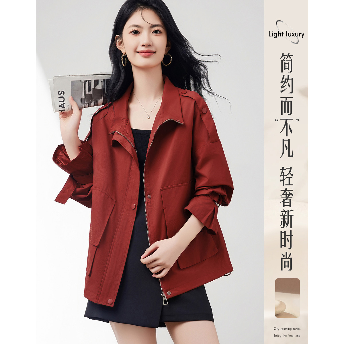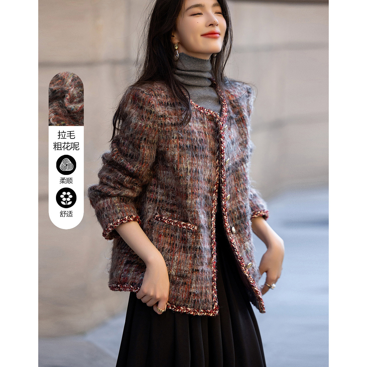 夹克外套女H版型高领设计气质美拉德穿搭 525457