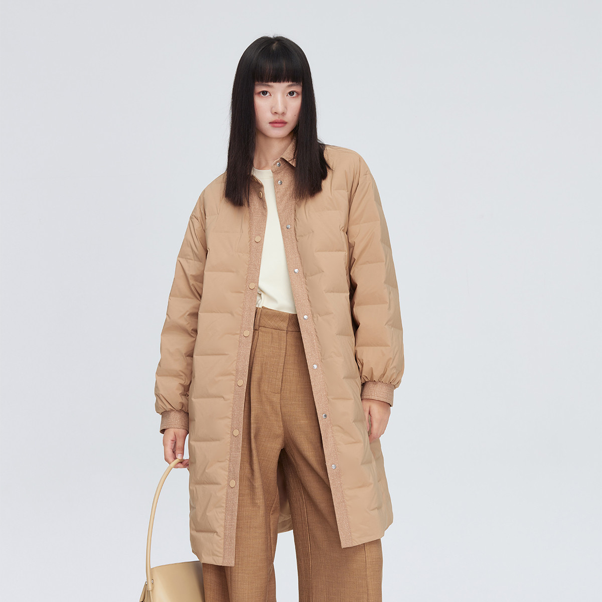 时尚翻领衬衫式轻薄鸭绒外套女宽松遮肉百搭轻薄中长款羽绒服女 149398