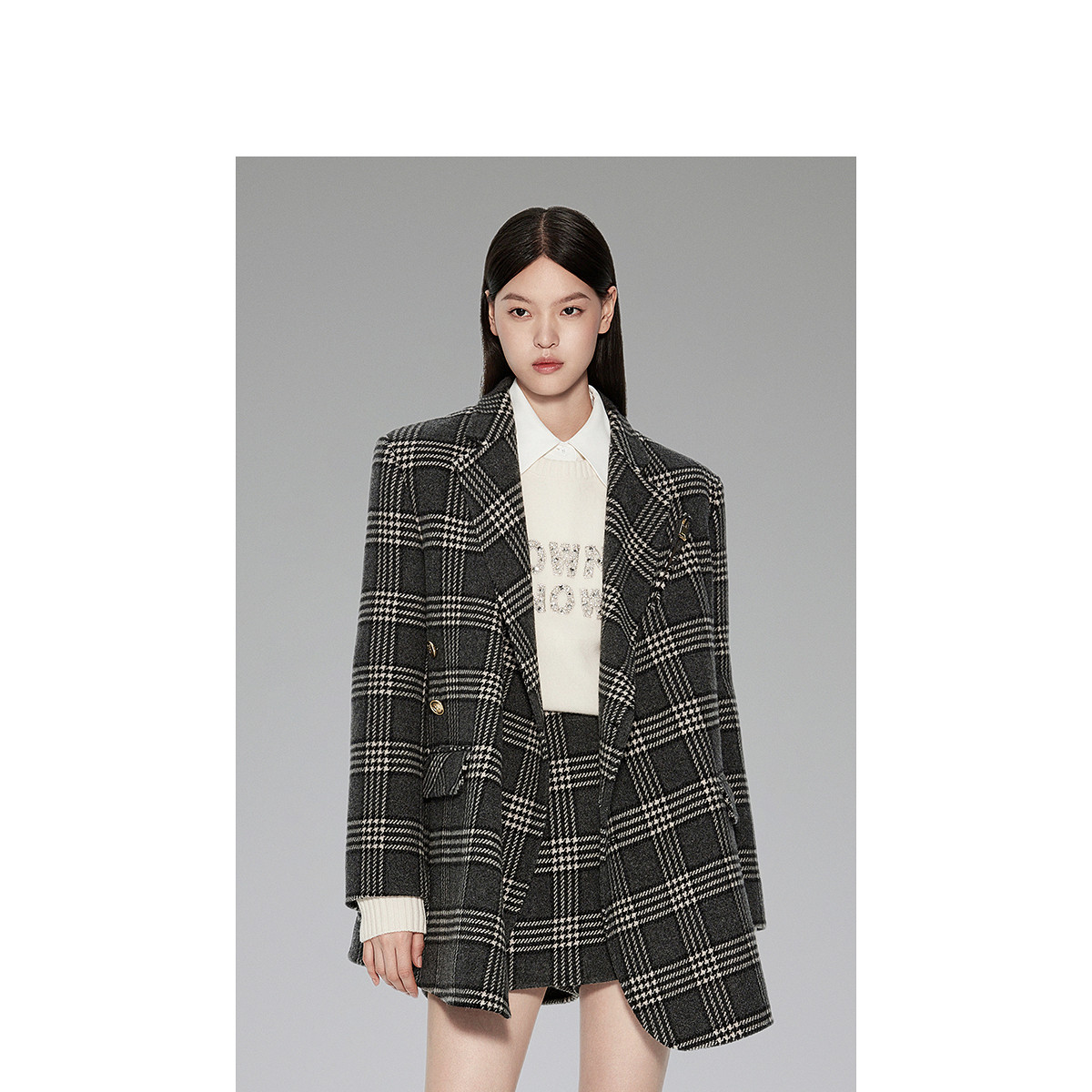 【高奢大衣】春装 澳进口羊毛双面呢西装外套女格子 847311