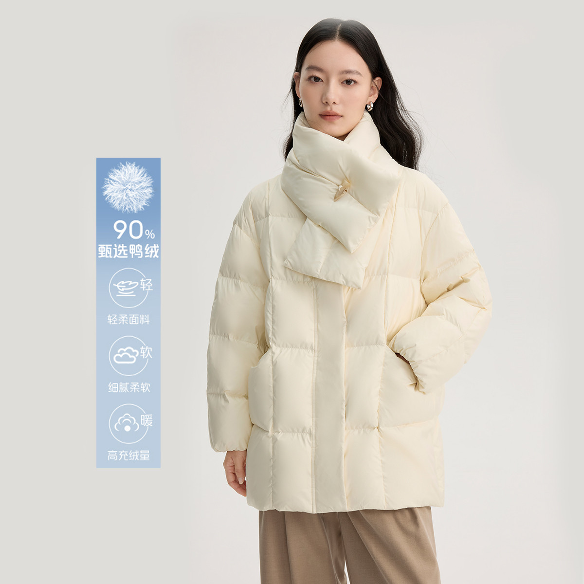 遮肉显瘦O型轻盈直充鸭绒短装外套女宽松翻领轻薄羽绒服女短款 377494