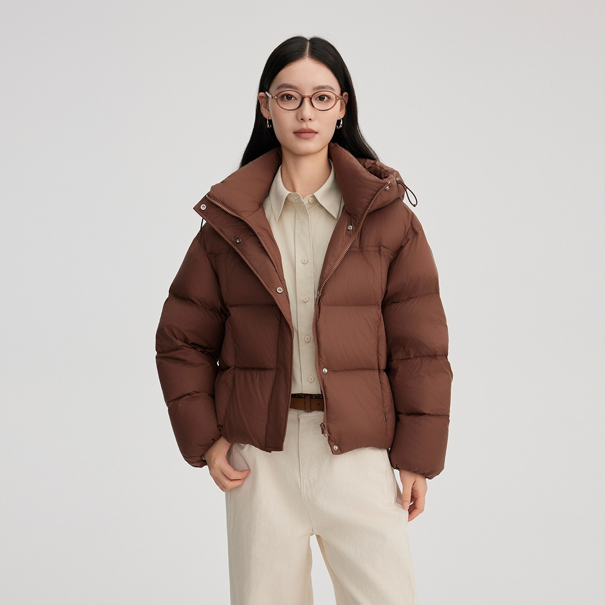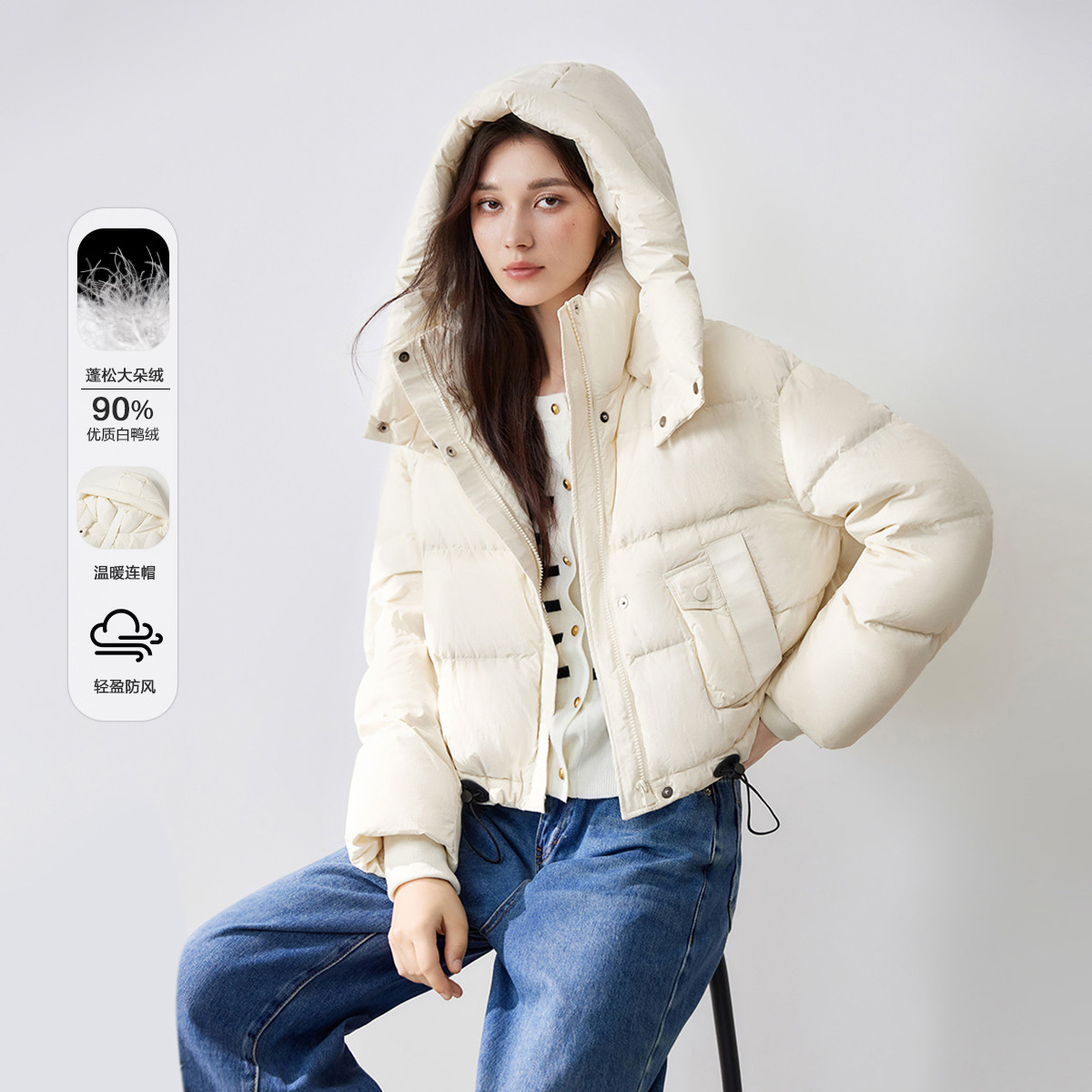【鹅绒】厚款保暖连帽女士短款宽松休闲泡芙羽绒服 875871