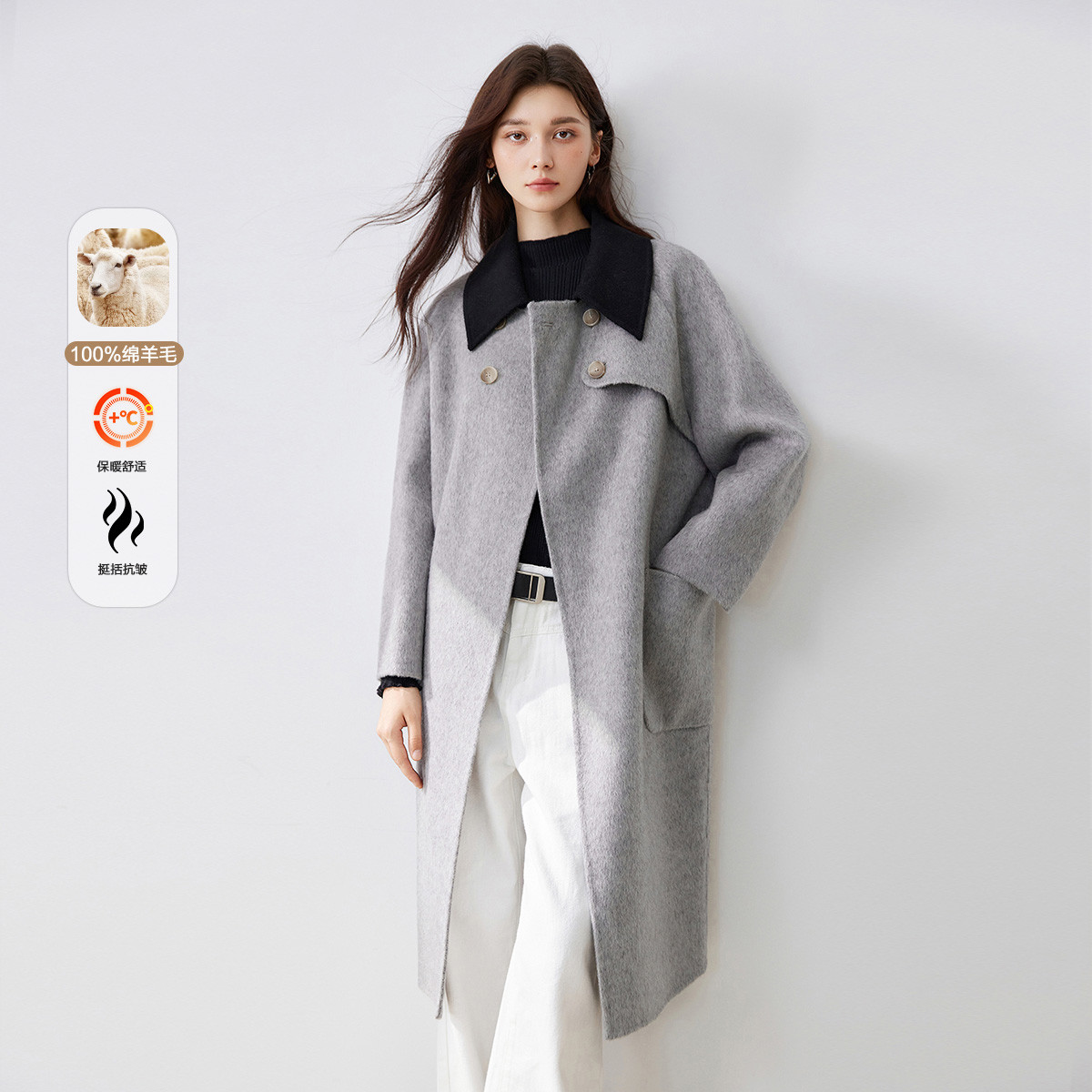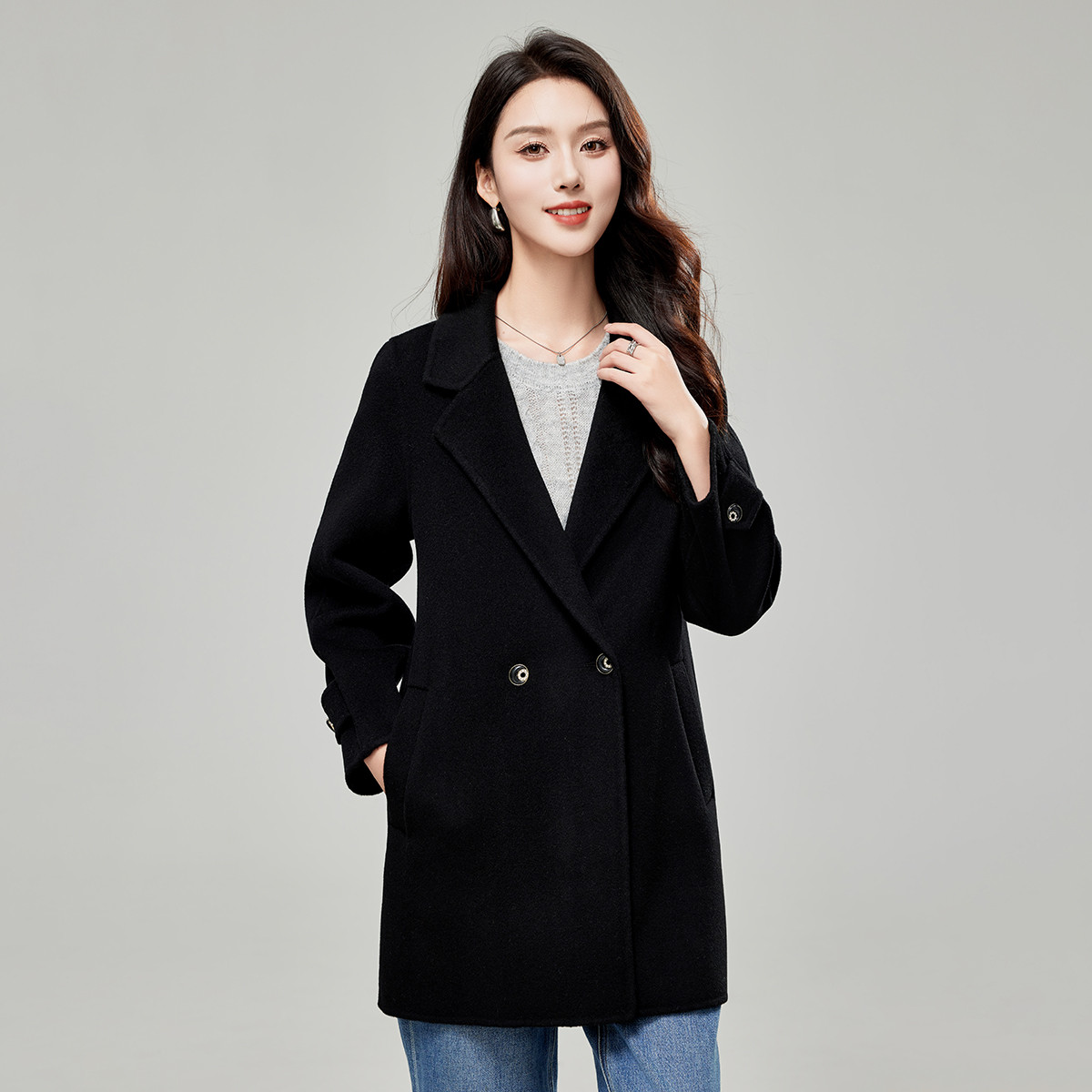 朗姿纯羊毛复古双面呢夹克高级感正肩毛呢冬季上衣 447257