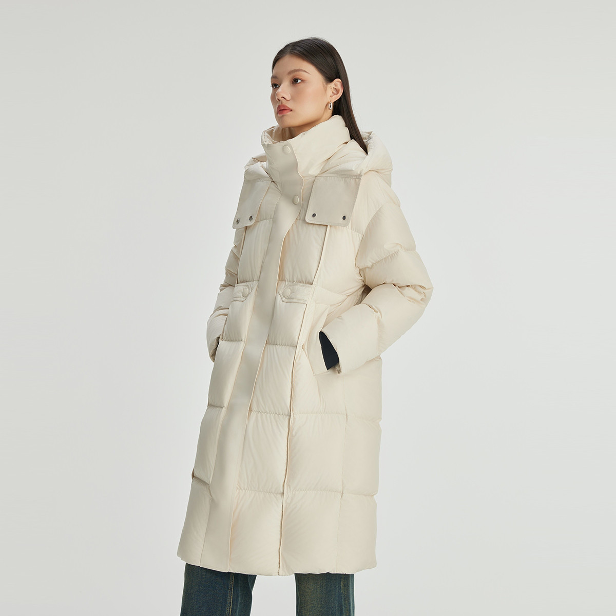 【鹅绒爆款】冬季女士长款羽绒服简约连帽防寒保暖极寒服 593759