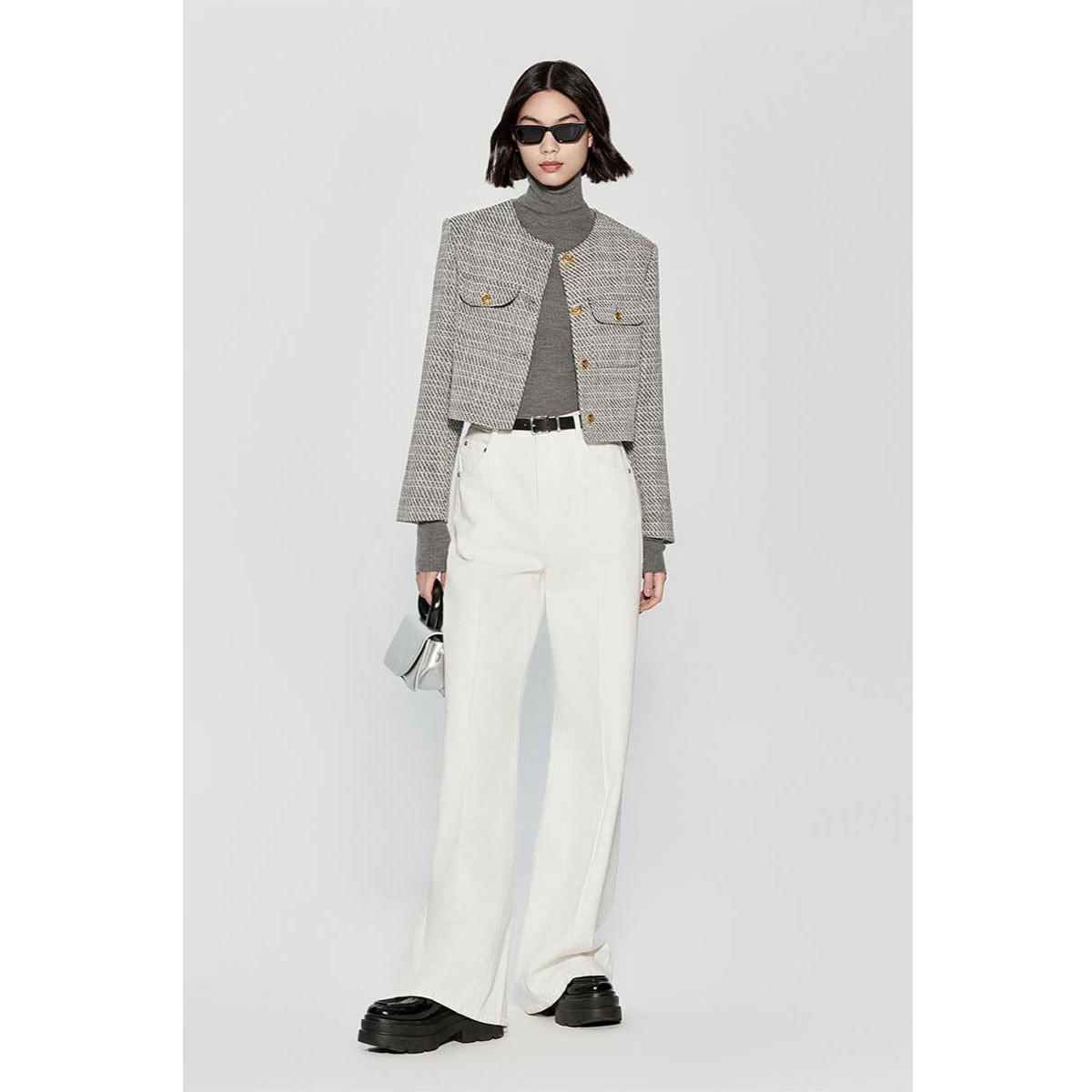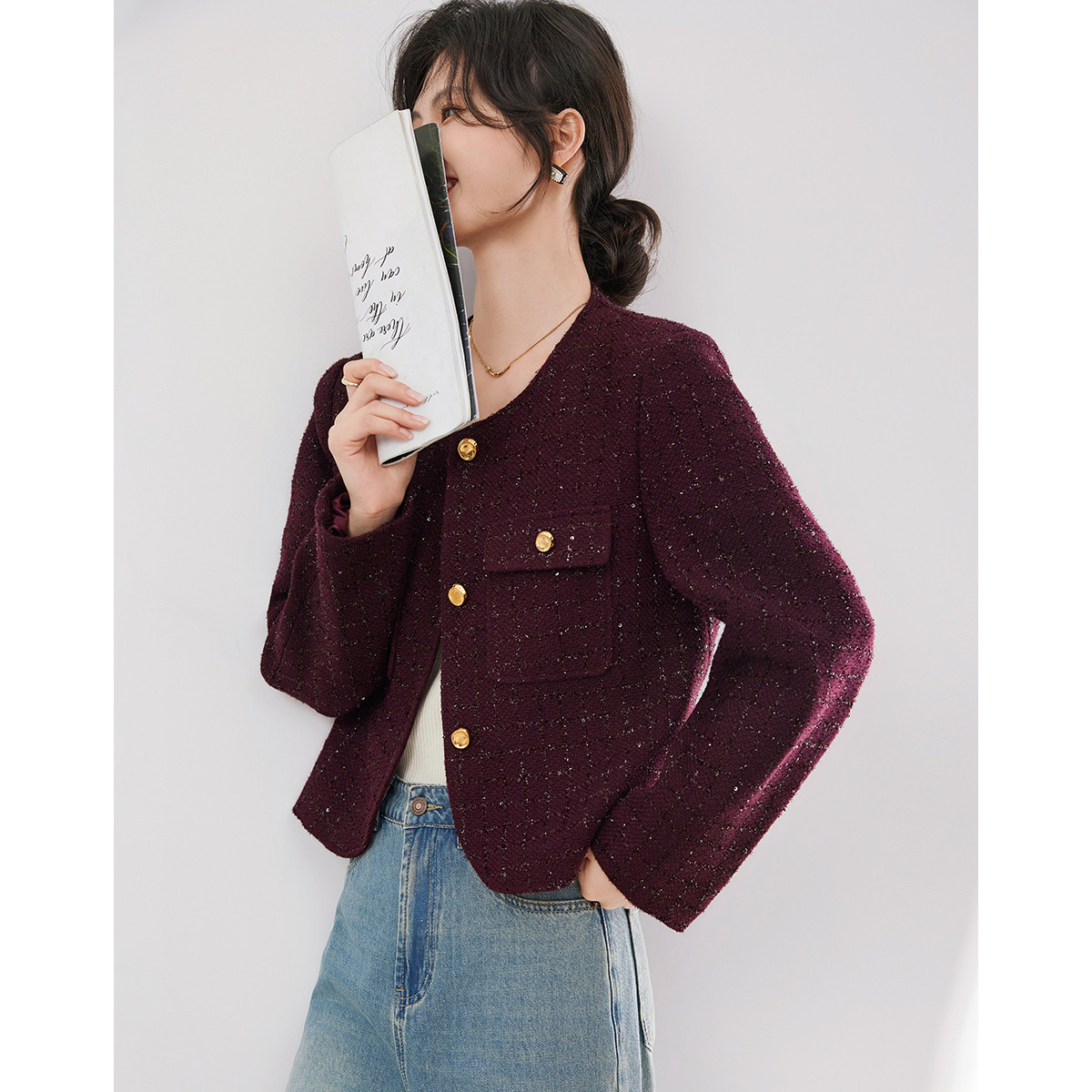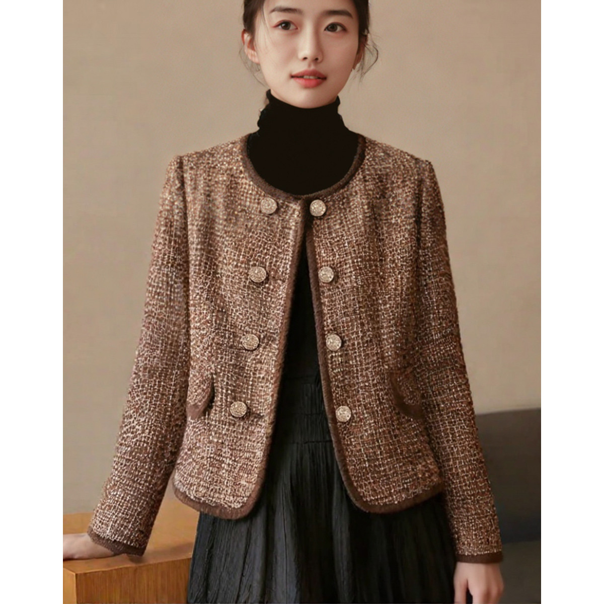【千金玛德琳】冬小香风知性千金含绵羊毛粗花呢撞色外套女短款 694017