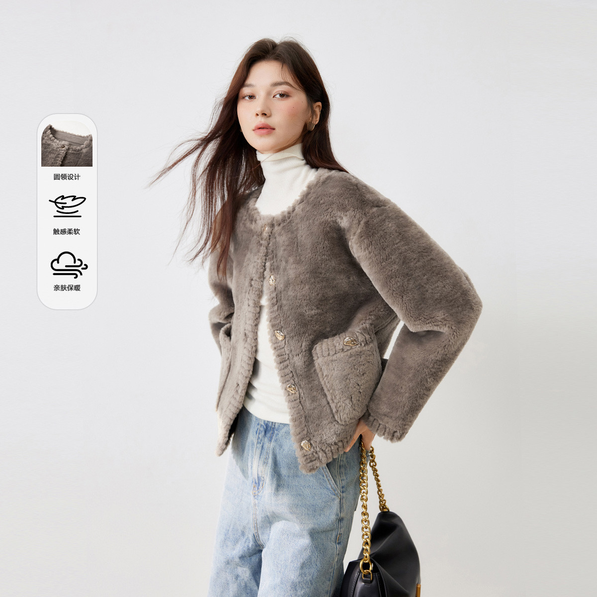 【2024冬季】优雅小香风仿羊羔绒短外套小个子仿皮草夹克女 354324