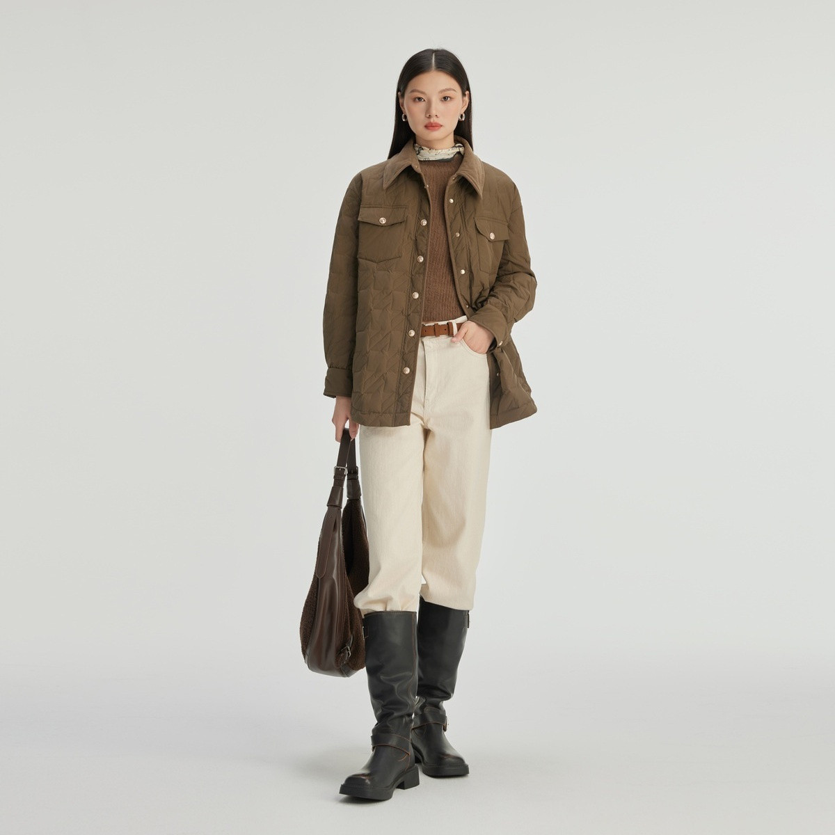 【90鸭绒】宽松中长款翻领收腰时尚保暖羽绒服女 578646