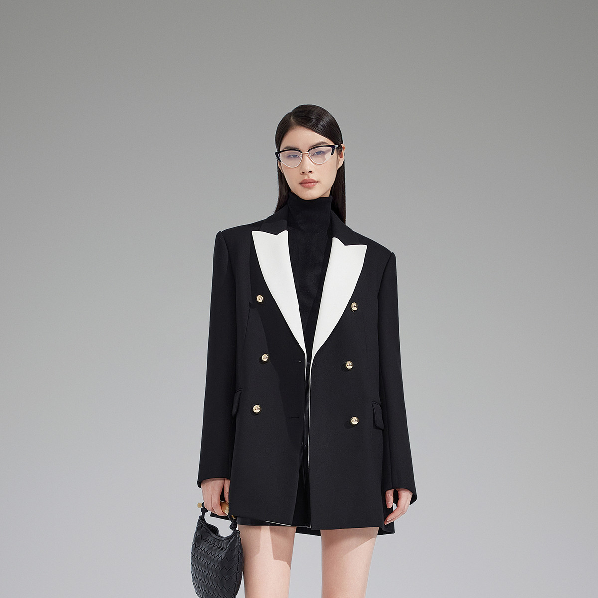春装 撞色中长宽松英伦风通勤西装外套女 993167