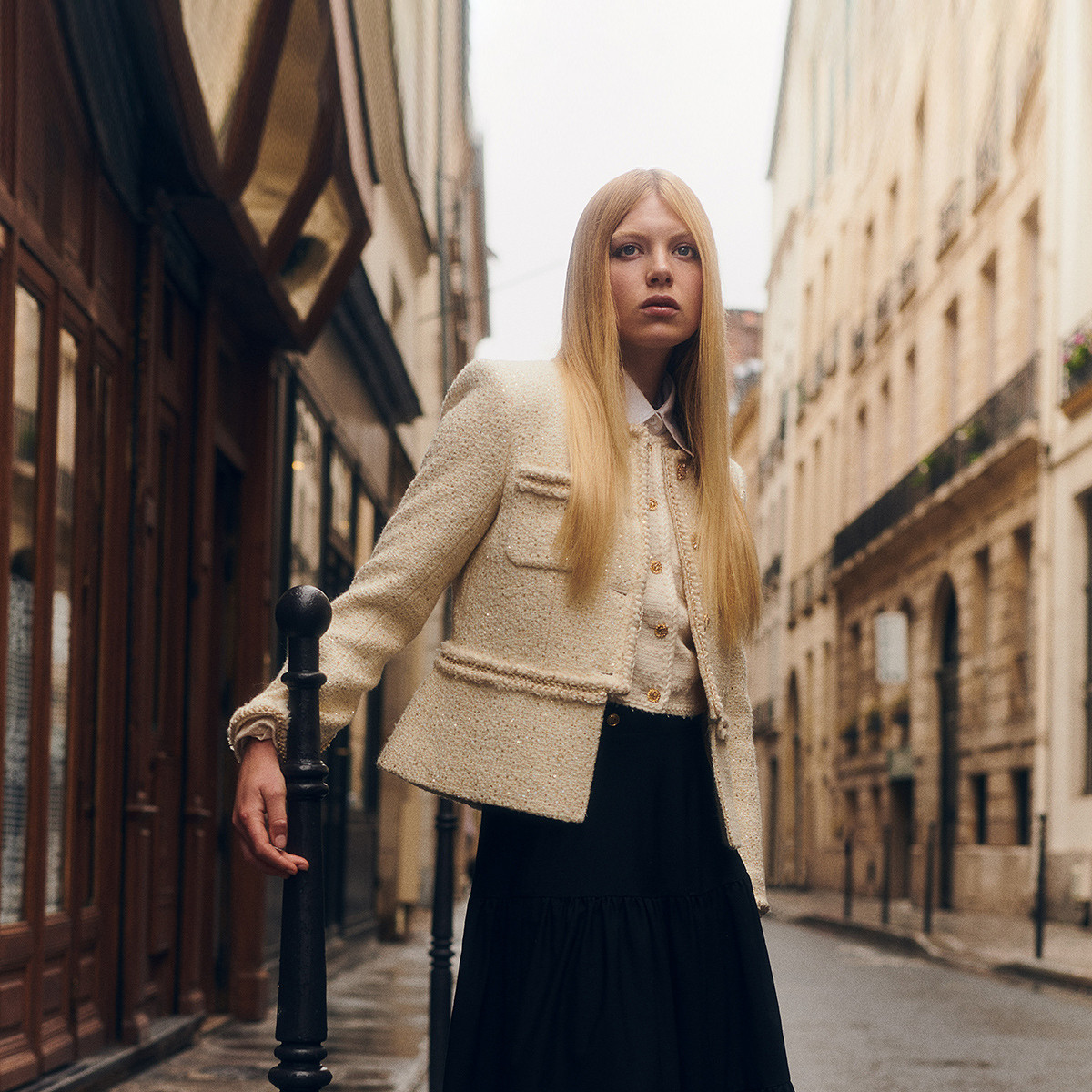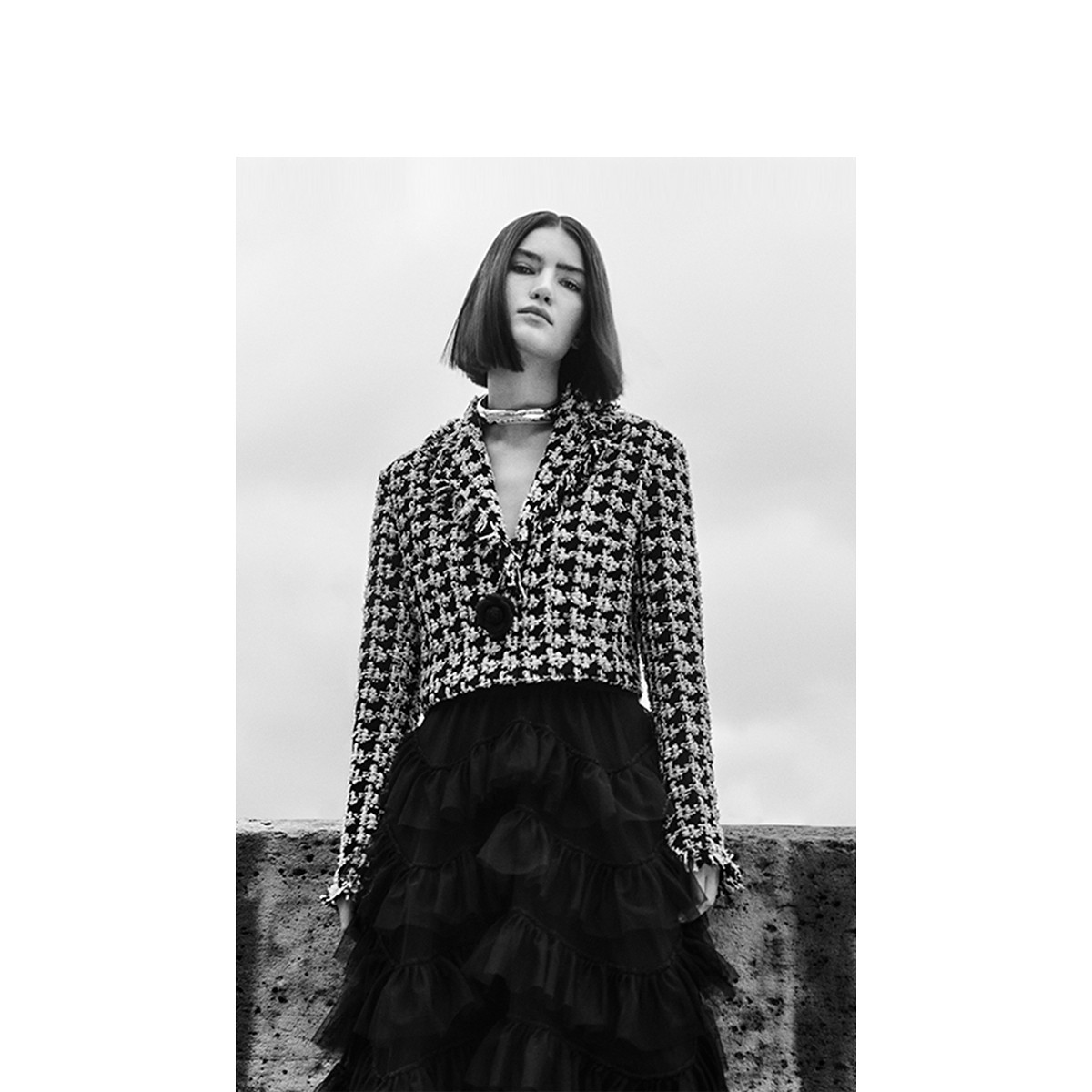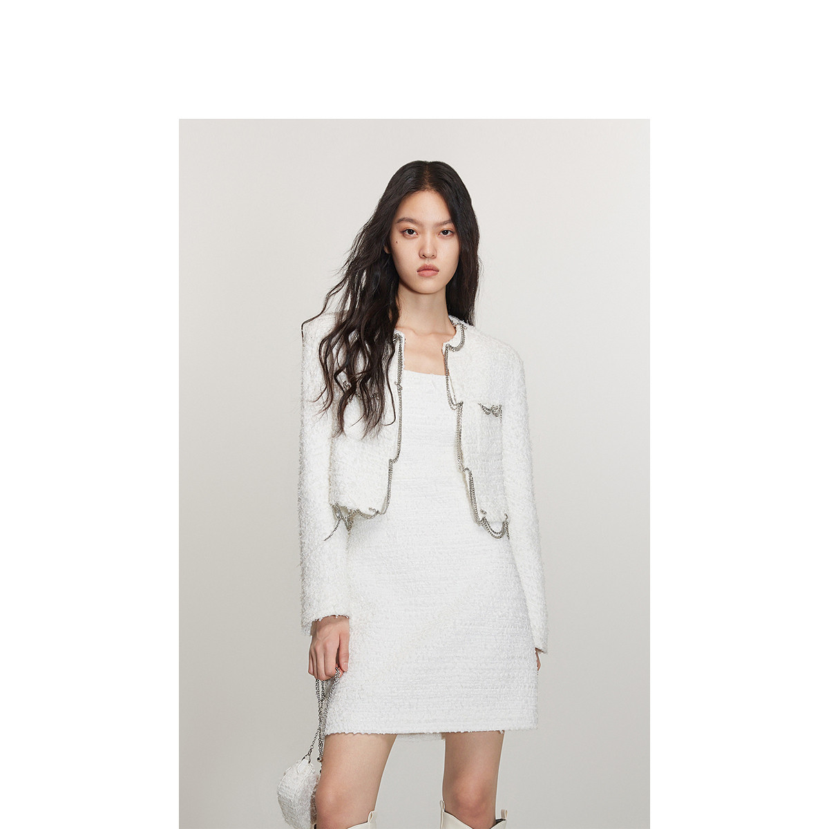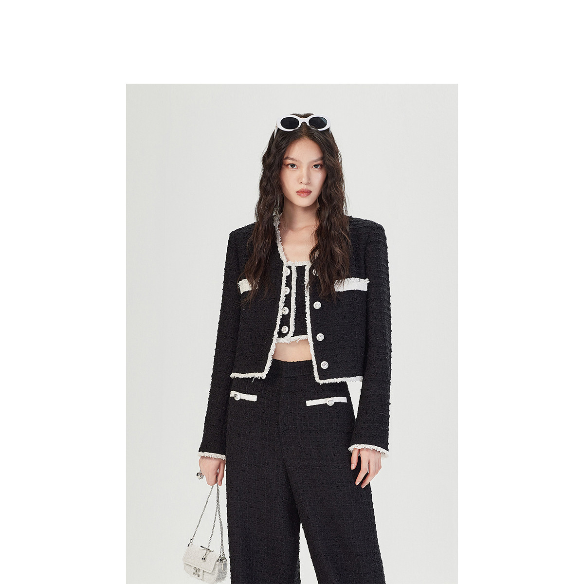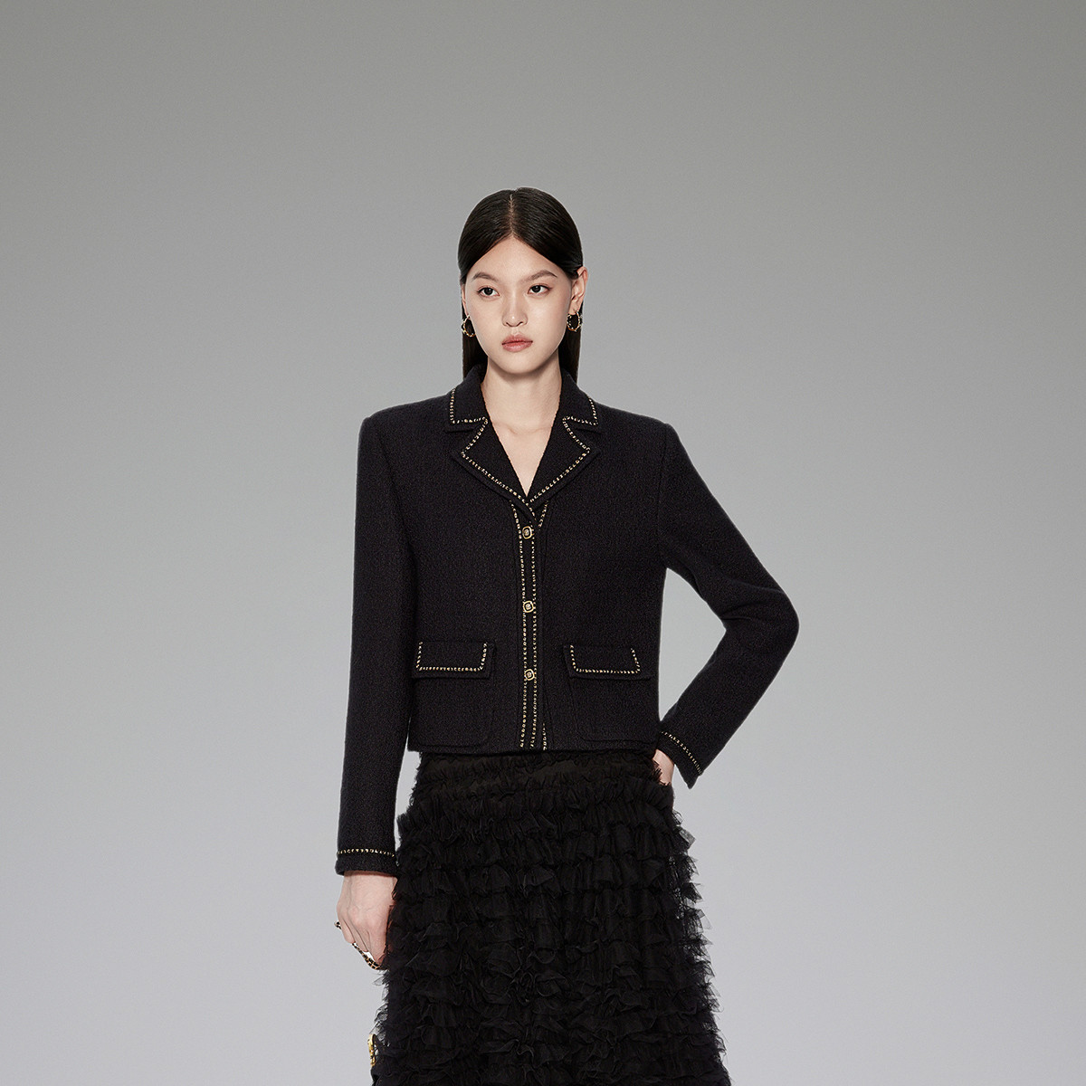 黑标系列春装 方领法式珠片花式纱小香风外套女 749263