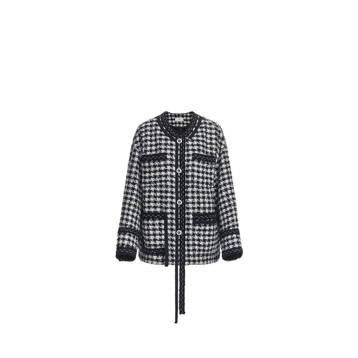 春装 亮丝千鸟格小香风西装外套女短款复古正肩 753359
